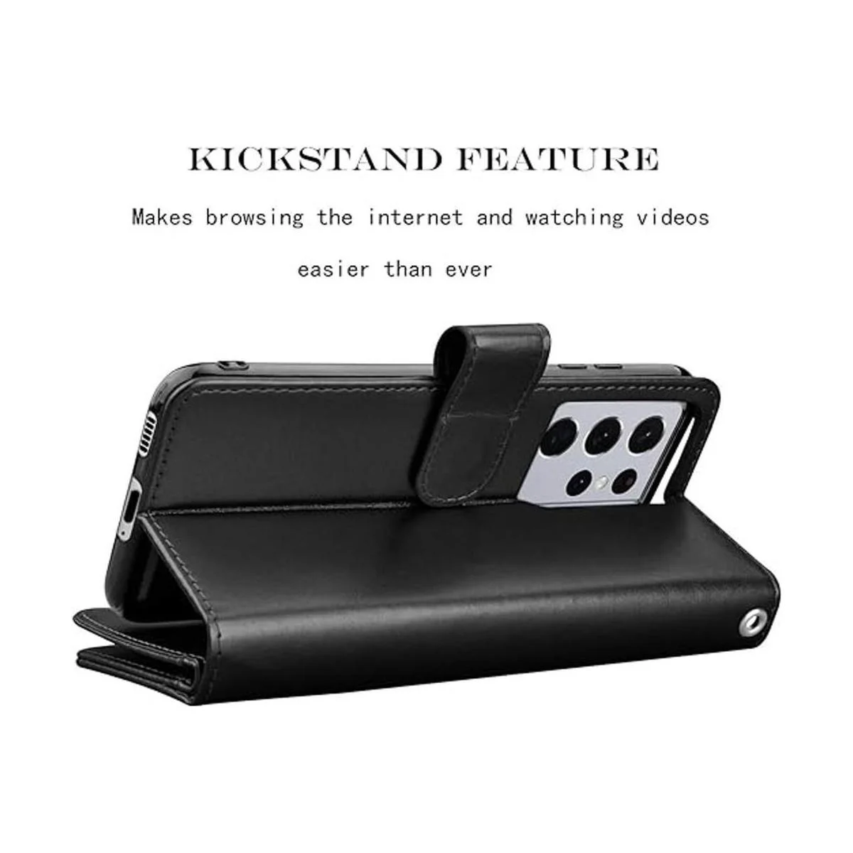 Njjex Funda tipo cartera para Samsung Galaxy S21 5G, para Galaxy S21, 9 ranuras para tarjetas Funda de cuero sintético para identificación de crédito, Folio Flip desmontable Funda magnética para teléfono y cordón para Samsung S21 Negro