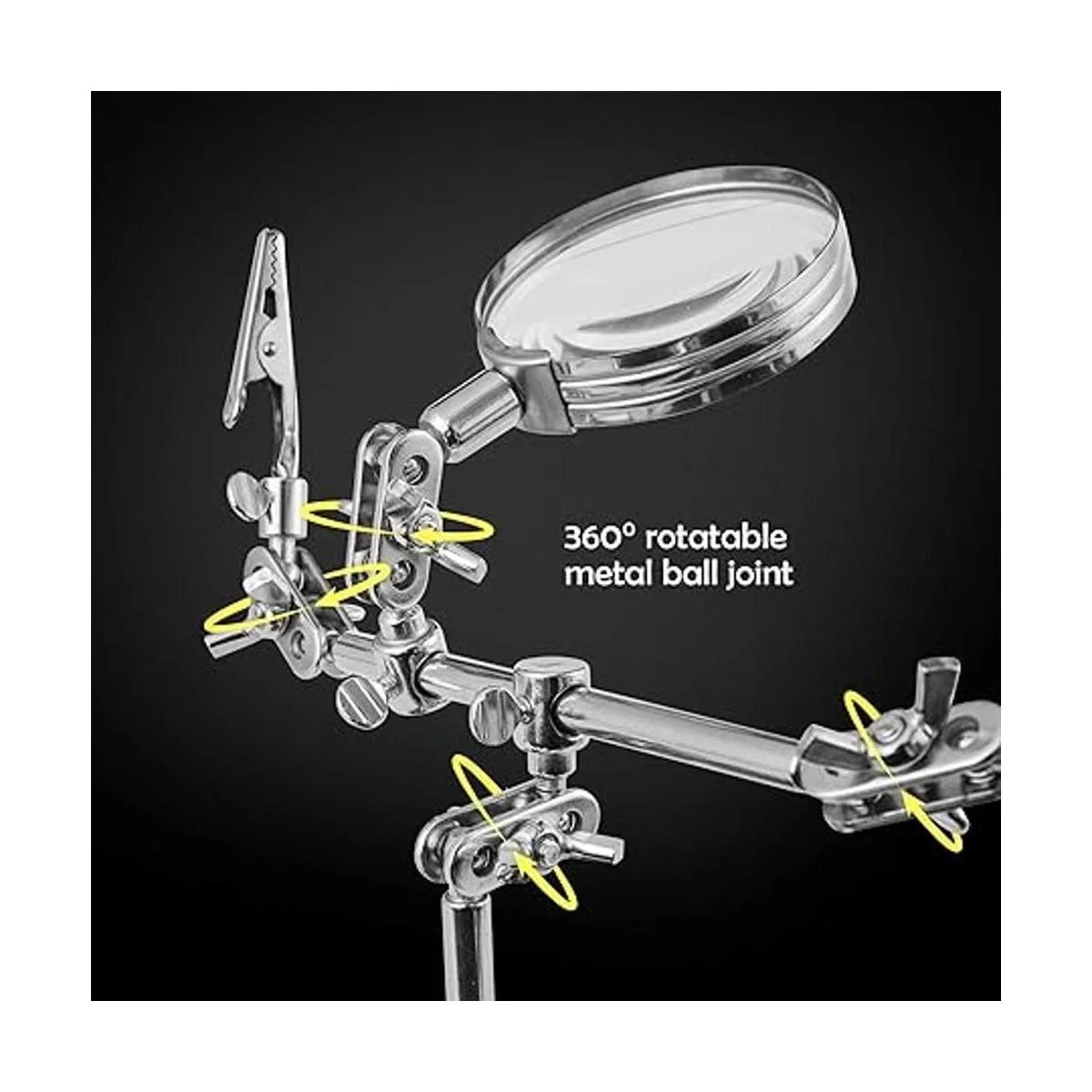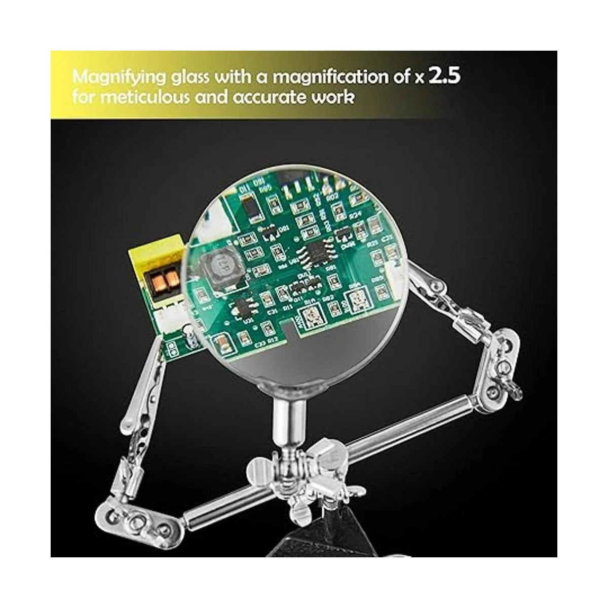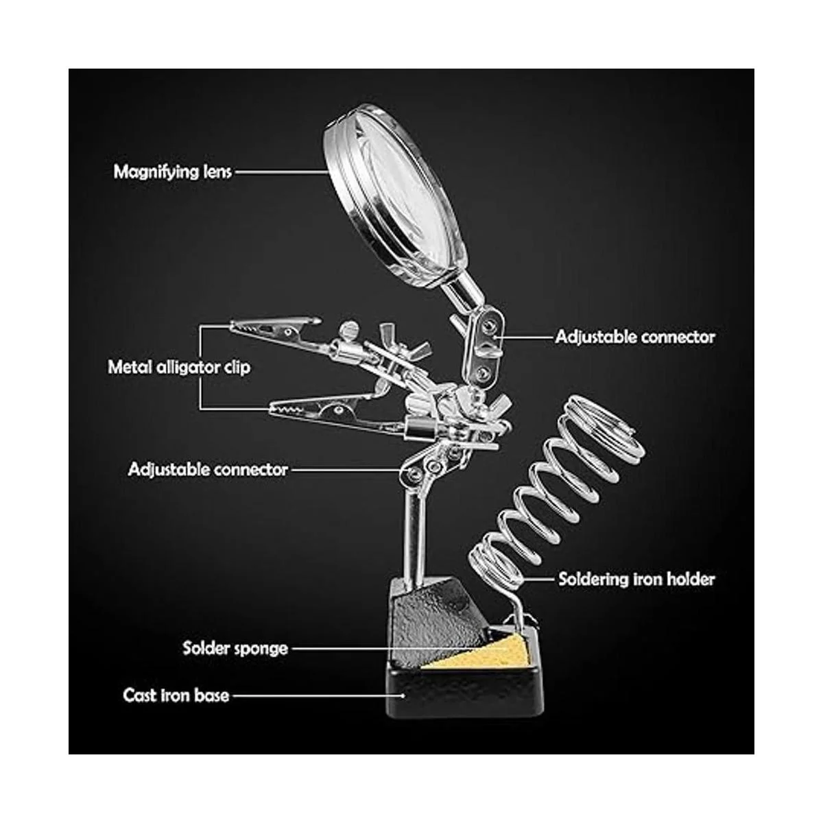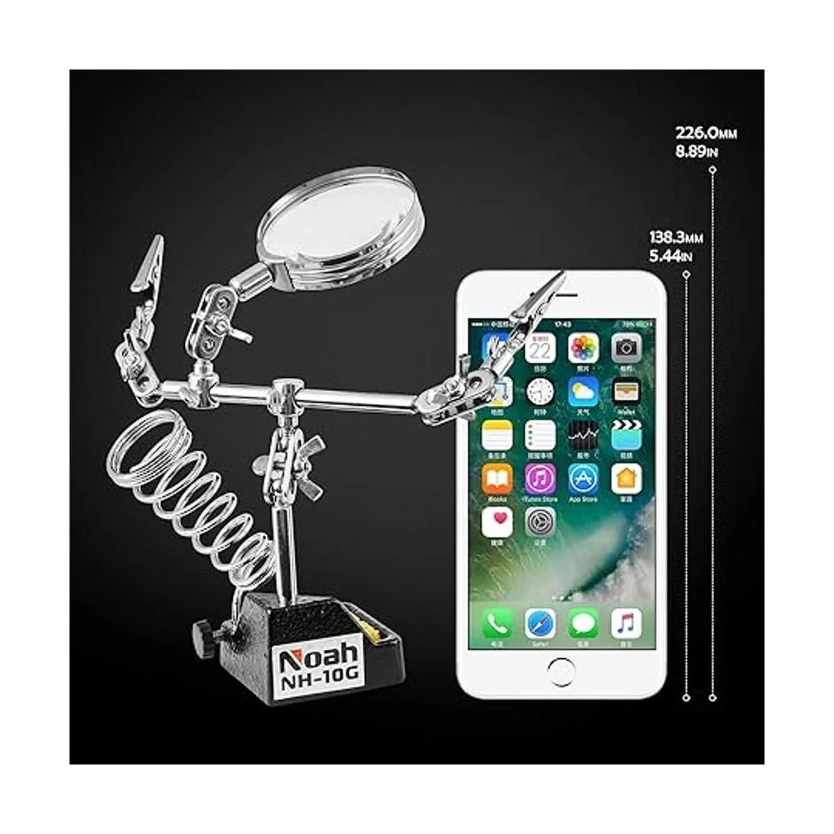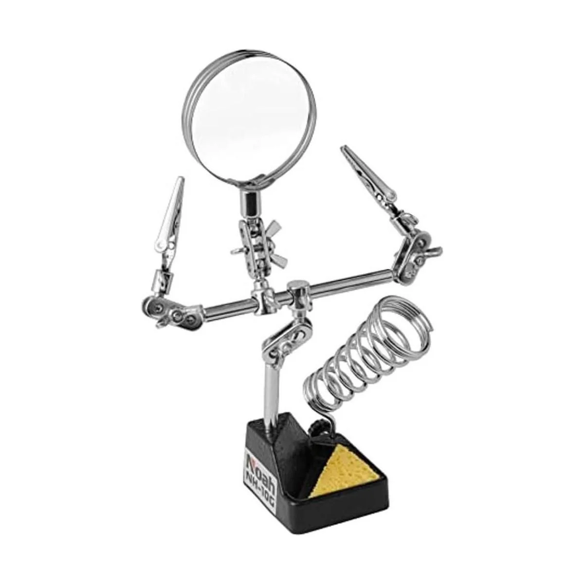 Noah Lupa 3 en 1 con doble clip de cocodrilo ajustable en lupa de 2.5 veces con soporte de soldador y esponja de limpieza, para soldadura, joyería, sujeción en electrónica