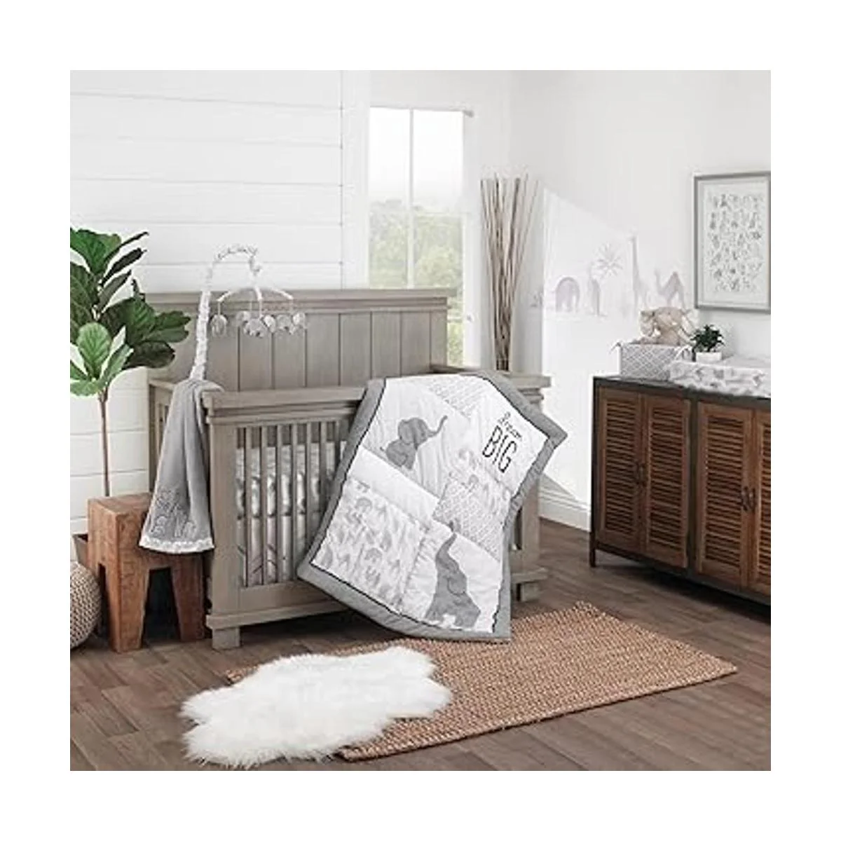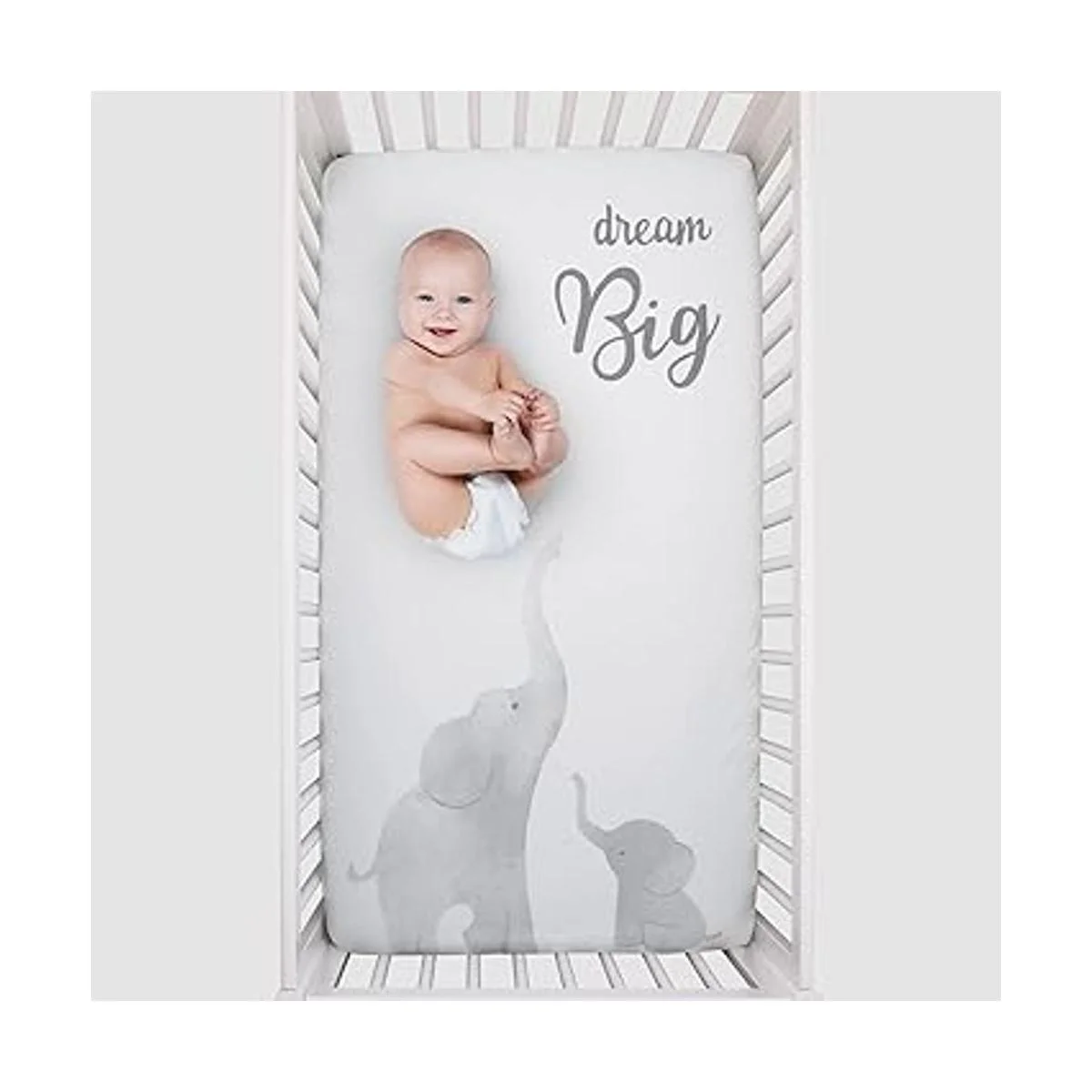 NoJo Sábana bajera de cuna con diseño de tribu de elefante, 100 algodón, color gris y blanco