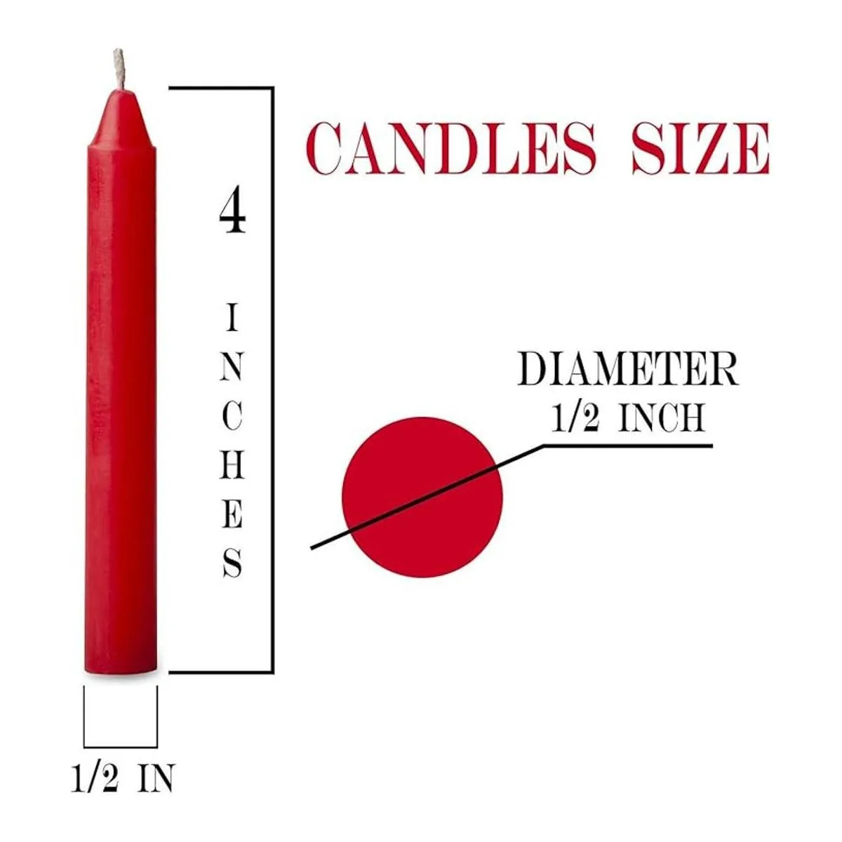 Características y detalles Embalado en 100 velas por caja 1,5 horas de tiempo de combustión Tamaño: 4 pulgadas x 0.5 pulgadas de diámetro Diseñado para adaptarse a sus carillones de ángel, pirámides de Navidad y más. Asegúrate de comprobar el tamaño de tu portavelas para asegurarte de que coincidan.
