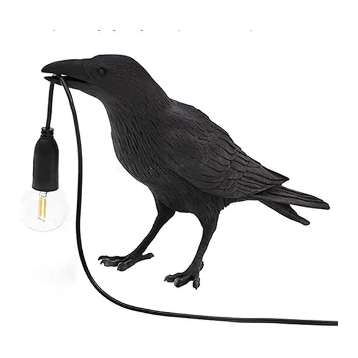 NorDiem Lámpara de mesa Raven, lámpara única de decoración de cuervo, luz de pájaro negro para sala de estar, dormitorio, lámparas de cuervo de resina realista