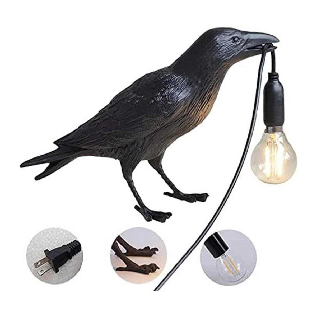 Material de alta calidad: esta exclusiva lámpara de mesa de pájaro negro está hecha de resina tallada y es sólida. Las patas de gallo contienen metal en el interior, por lo que no se rompe fácilmente.