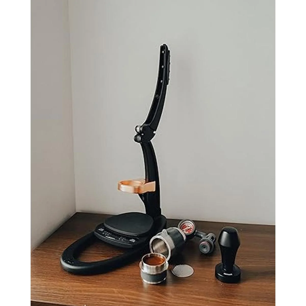 Diseño único: es un manipulador con resorte y no requiere ajustes adicionales. Tiene un mango ergonómico con un agarre cómodo que te permite empujar el café molido fácilmente. La base está hecha de acero inoxidable 304 con un mango de aluminio anodizado.
