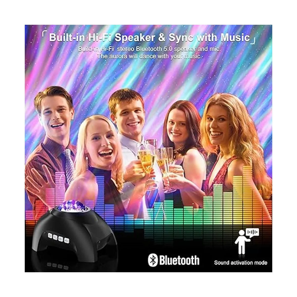 Northern Lights Aurora Proyector para dormitorio con altavoz Bluetooth de música y ruido blanco, proyector de galaxia Vinwark, proyectores de luz nocturna estrellada para sala de juegos de niños y adultos, cine en casa, techo