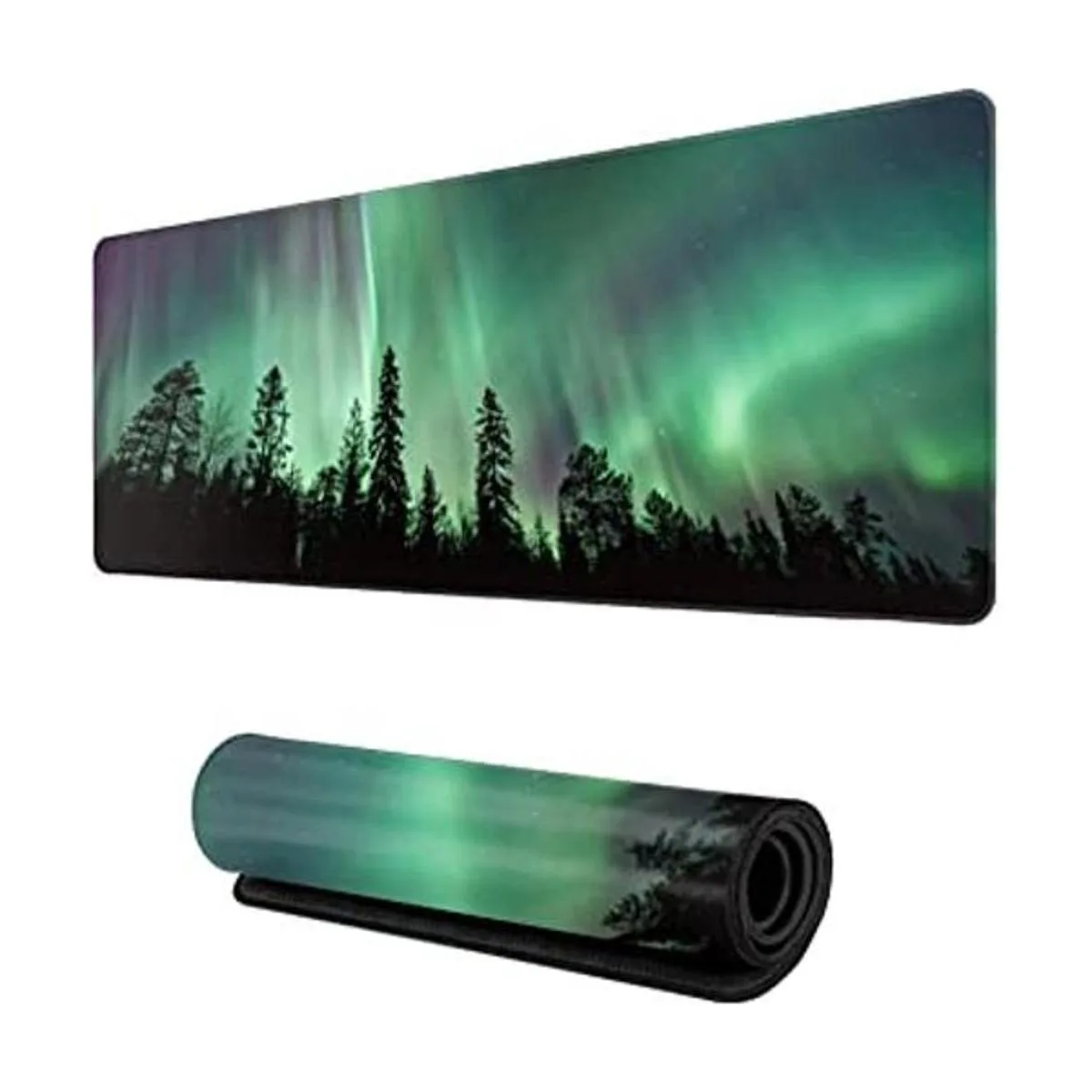 Northern Lights Forest Aurora Borealis XXL XL Alfombrilla de mouse grande para juegos para escritorio, antideslizante, larga extendida, alfombrilla de mouse de goma, 31.5 x 11.8 pulgadas