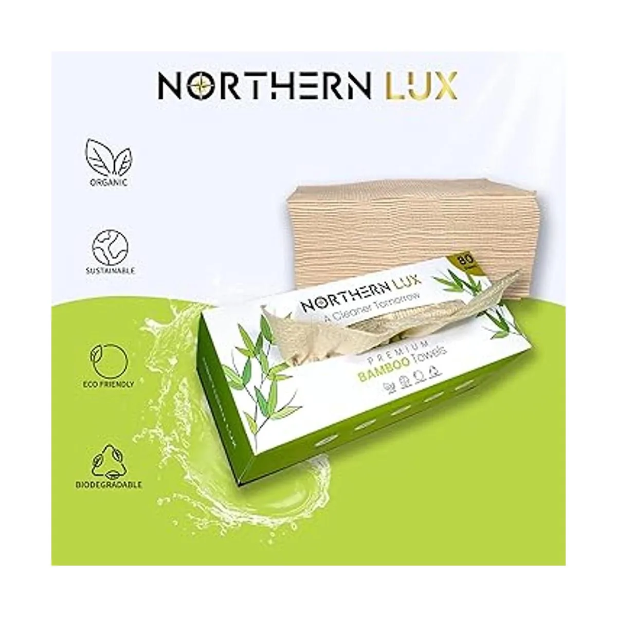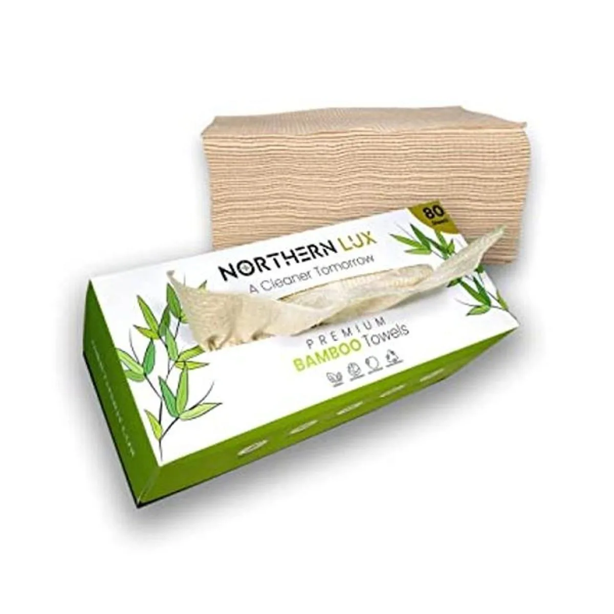 Northern Lux Toallas de bambú prémium 80 hojas, paños faciales orgánicos biodegradables, resistentes, suaves y libres de fragancia, desechables y sostenibles, absorbentes, multiusos