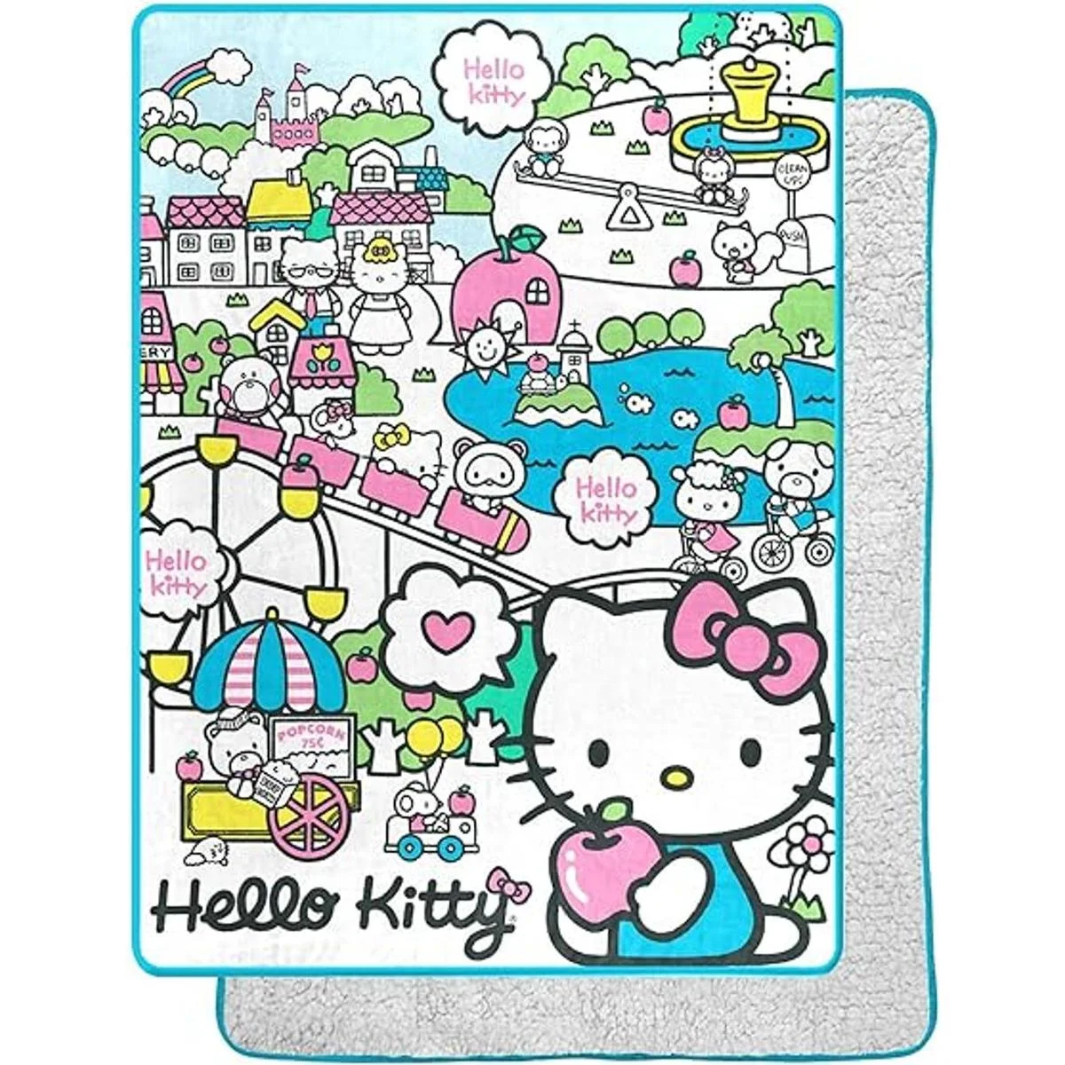 Northwest Hello Kitty My Cute World Manta de sherpa de seda de gran tamaño, 60 x 80 pulgadas