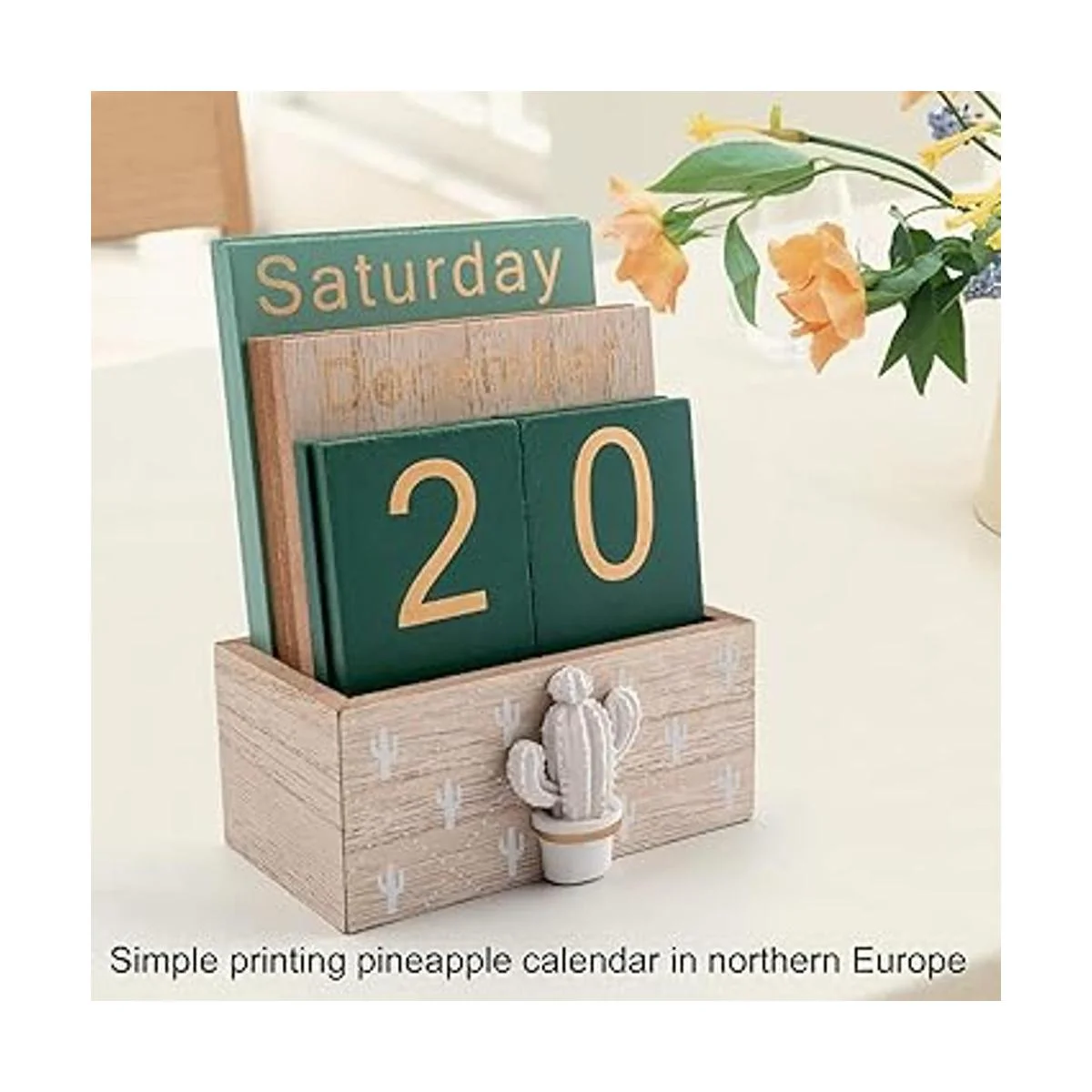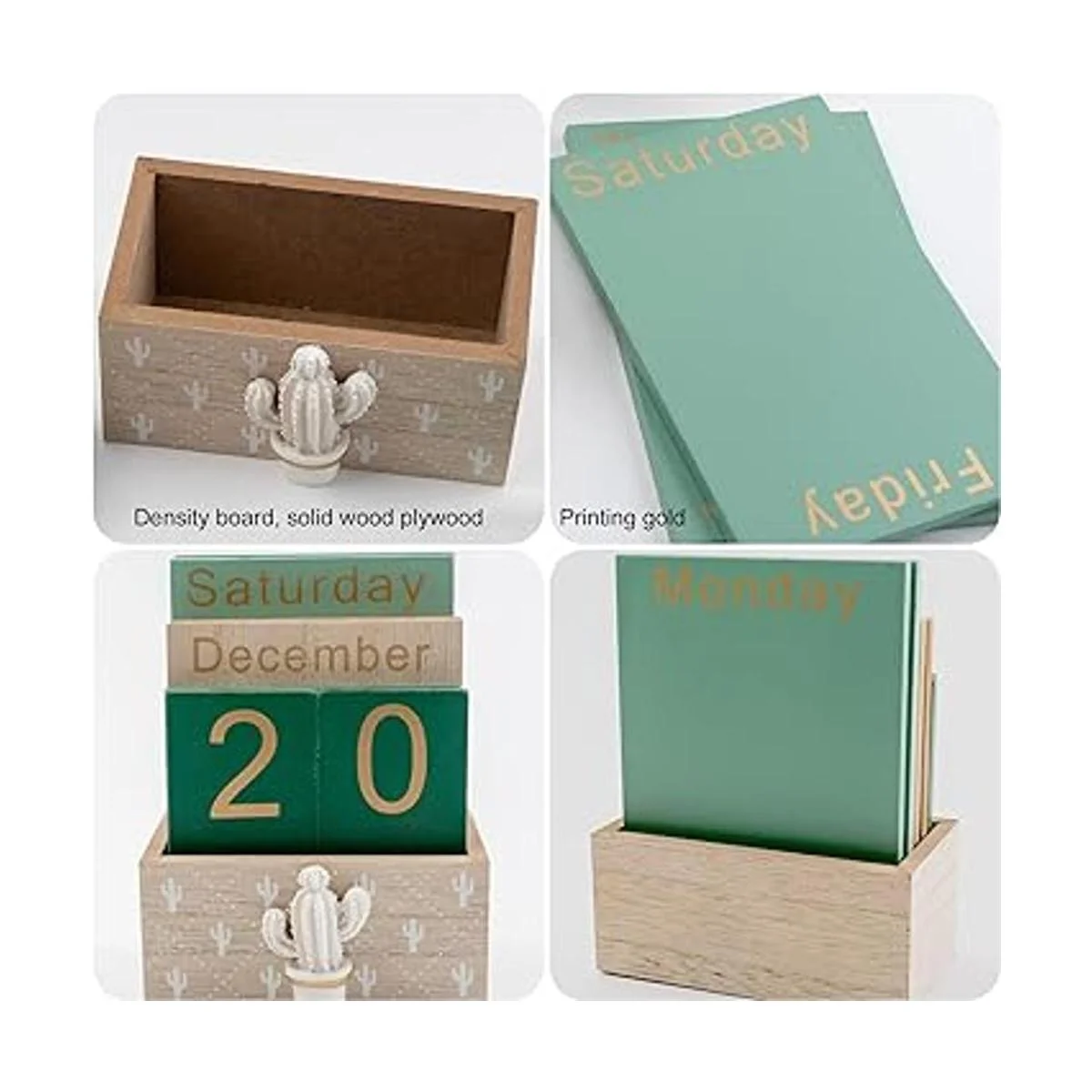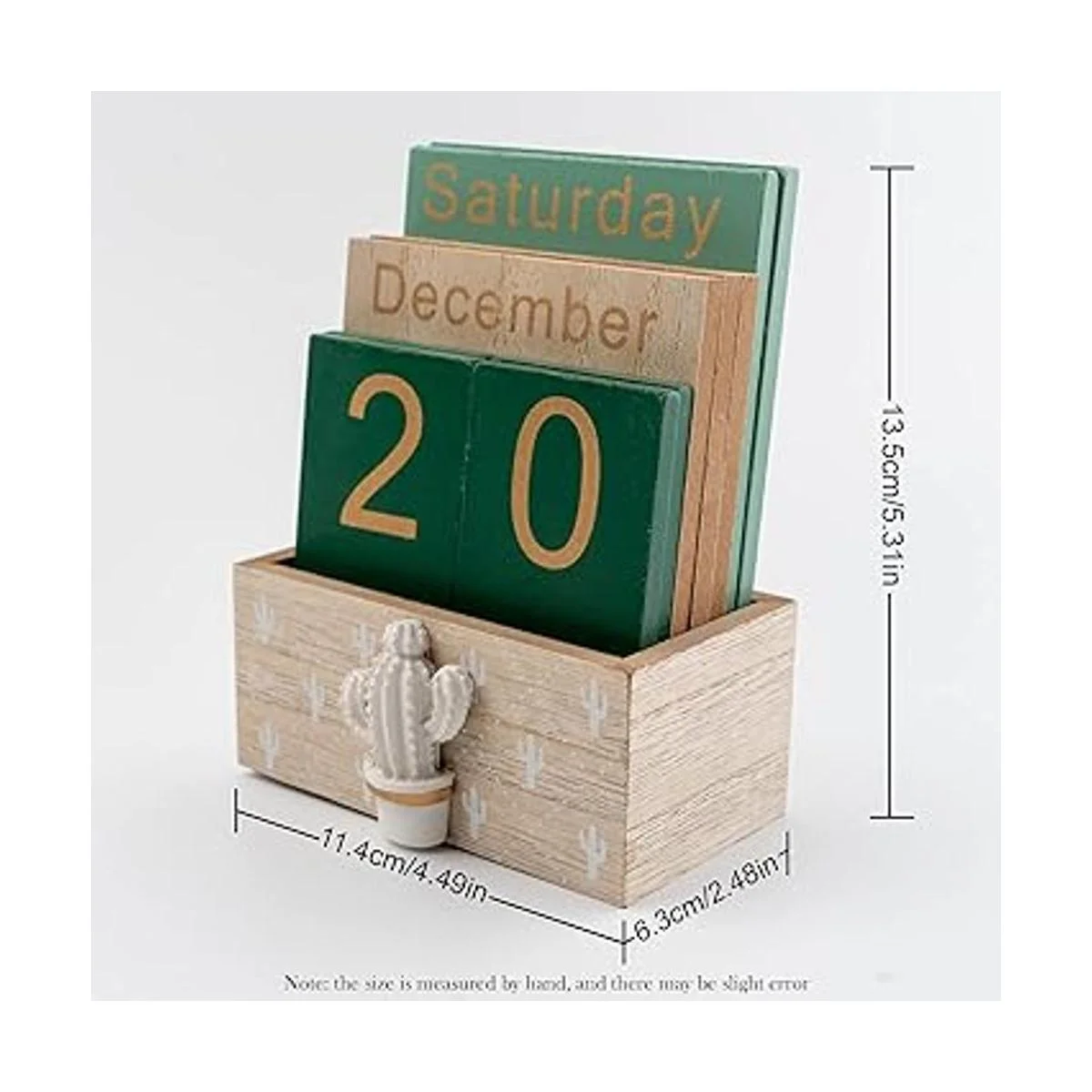 Notakia Calendario perpetuo, calendario de madera para accesorios de escritorio de oficina en casa, calendario de bloques de madera vintage verde