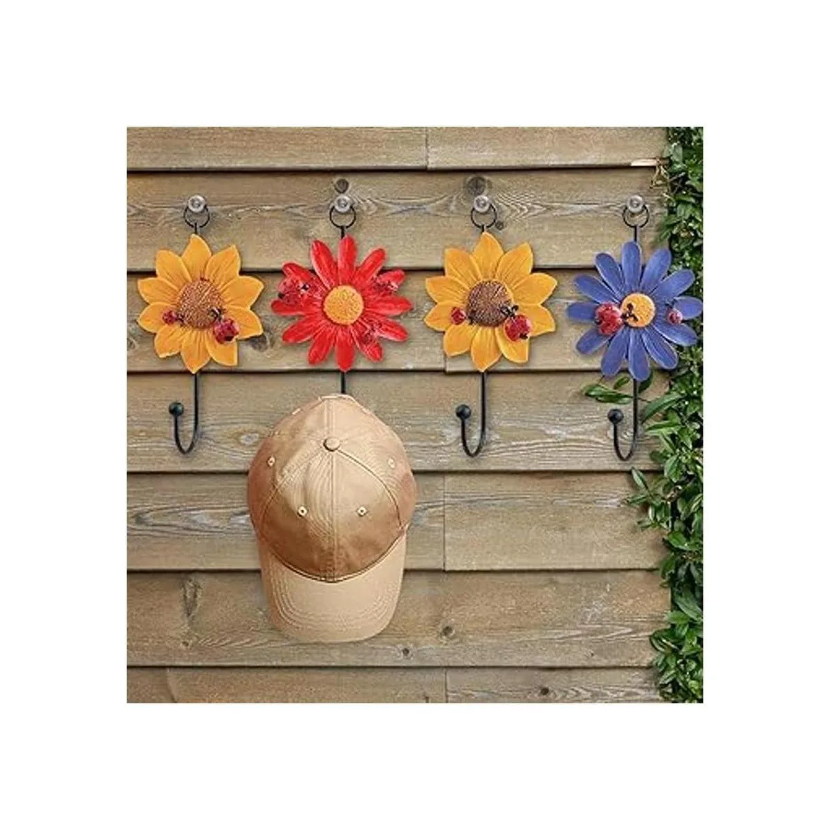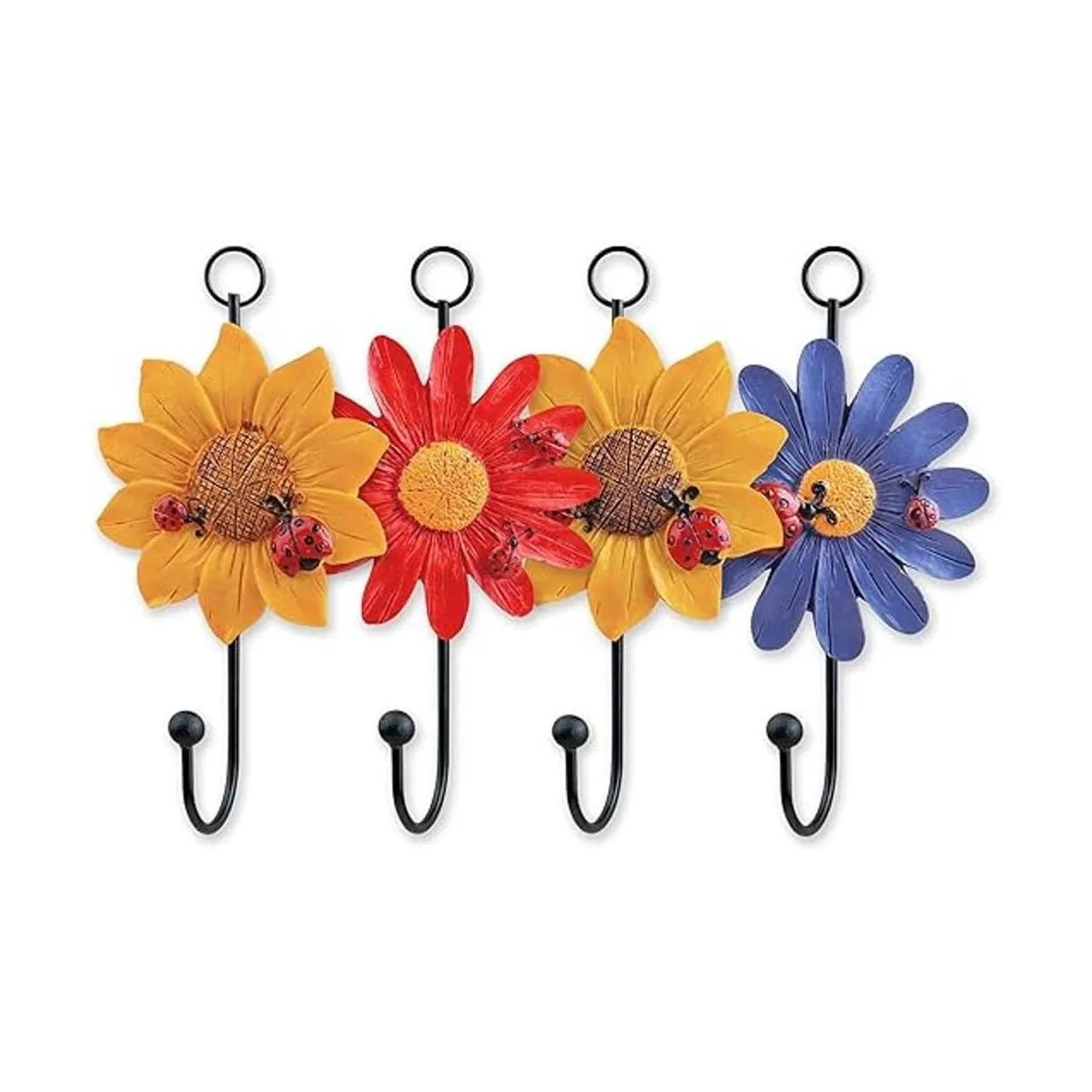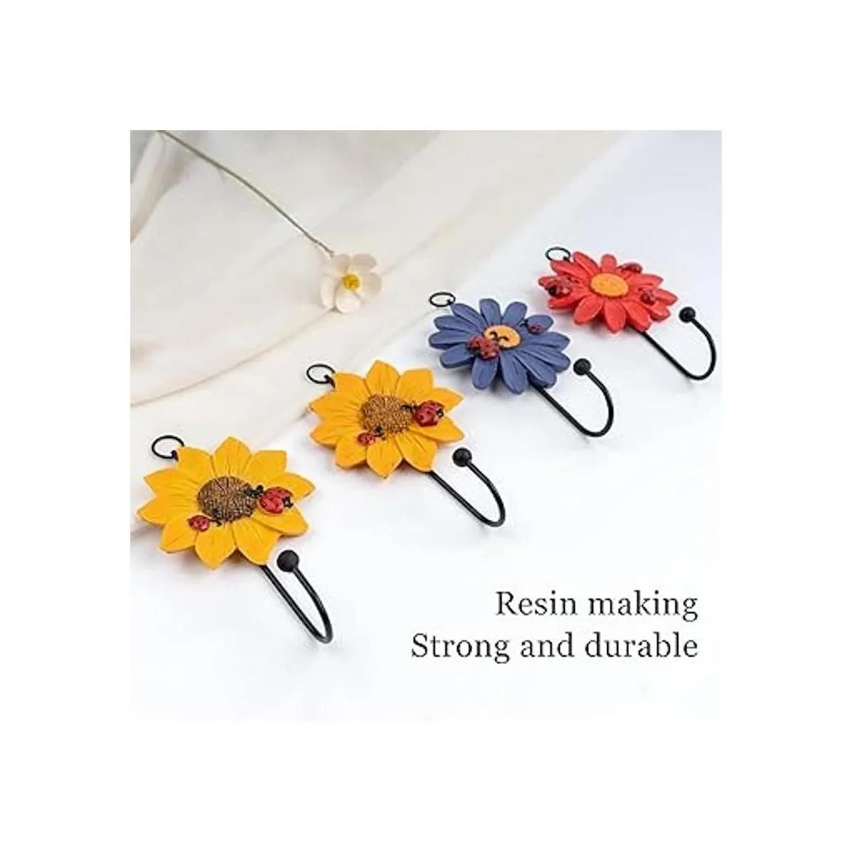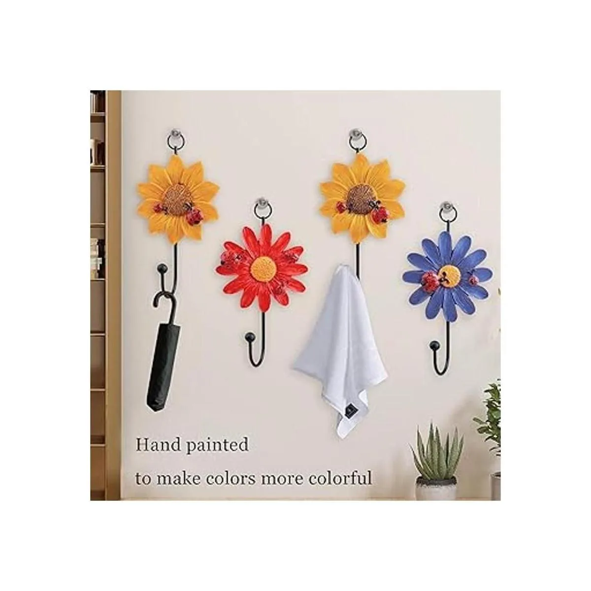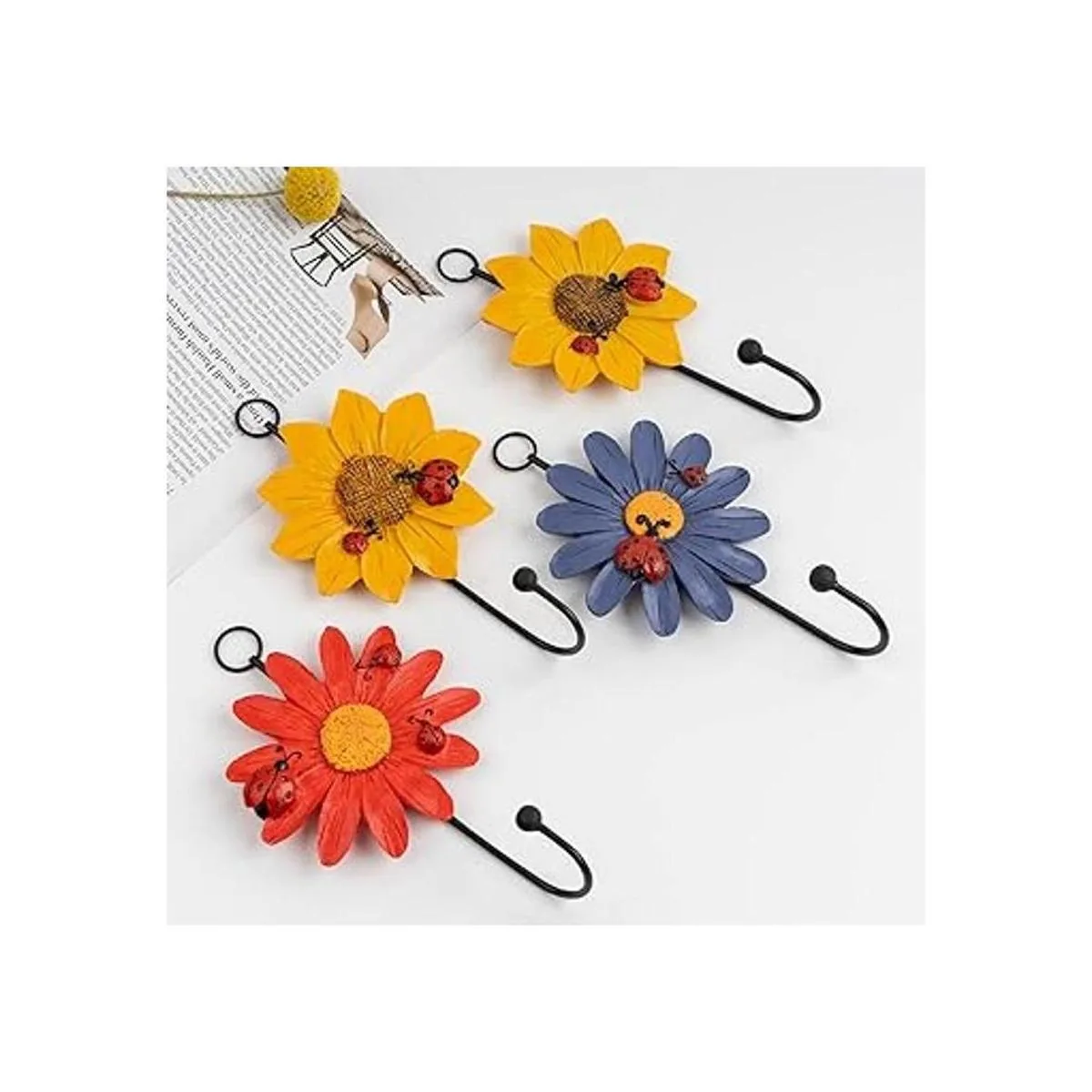 Notakia Creative Daisy Ganchos de pared de resina para colgar en la pared, diseño de flores, gancho de hierro pintado a mano, para sombrero, llave, ganchos de toalla para decoración del hogar juego de 4