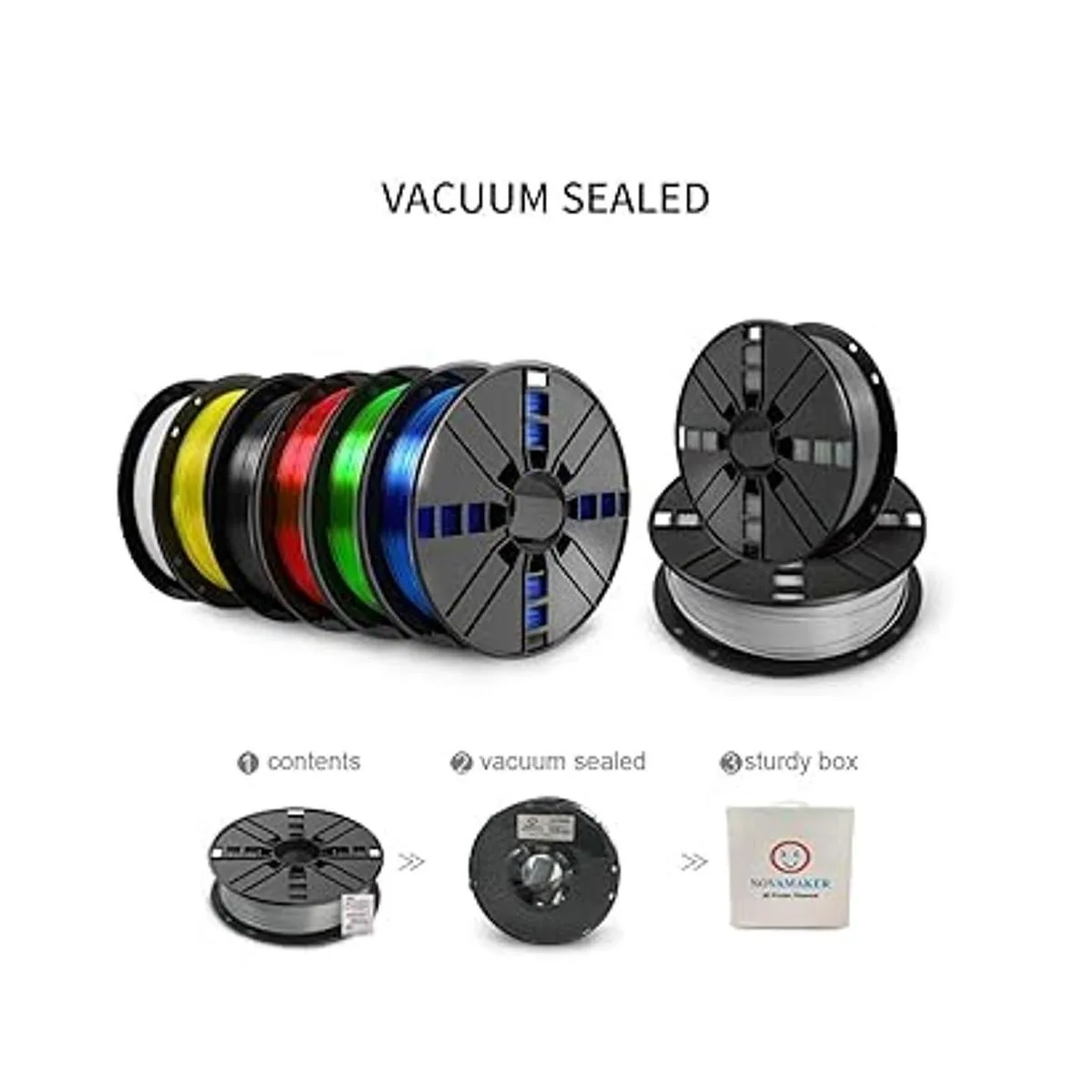 Sin atascos ni burbujas: el filamento PETG de 1.75 mm de Novamaker se seca durante 48 horas antes de su envasado y se sella al vacío en una bolsa de nailon. Sin problemas de encordado y deformación, fácil de usar.