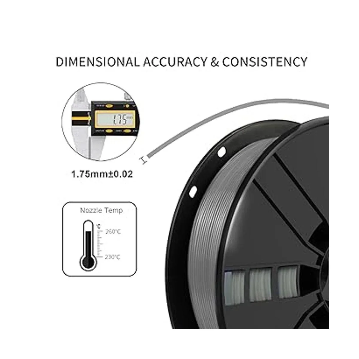 Consistencia dimensional: 1.75 mm de PETG, precisión dimensional / 0.02 mm, lo que te da una gran experiencia de impresión sin atascos. Carrete de 1 kg.