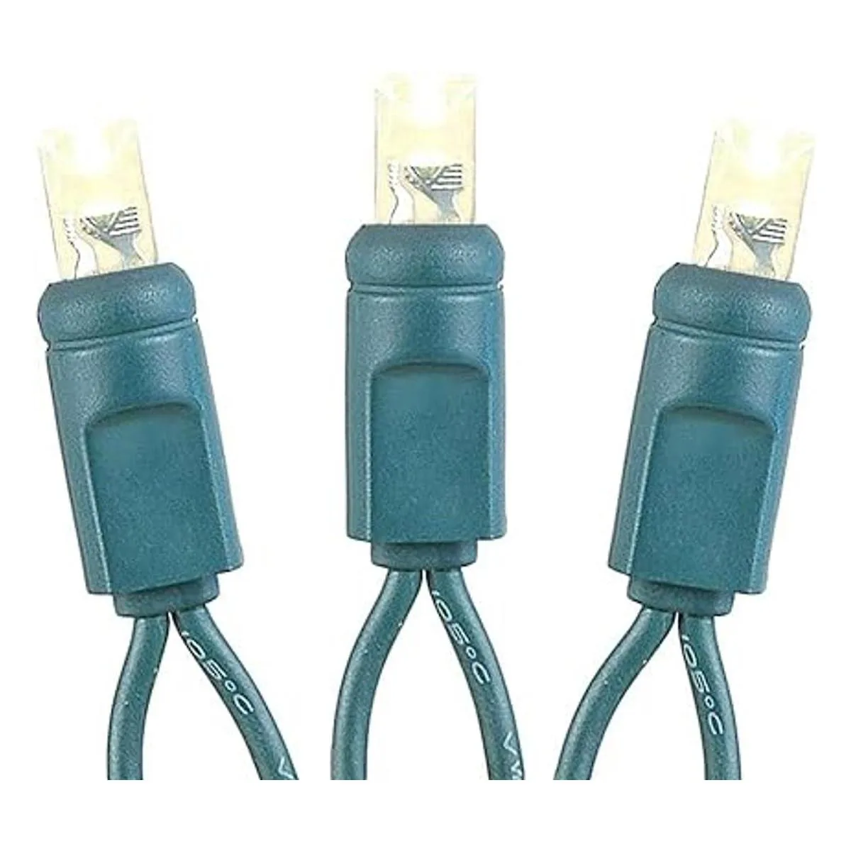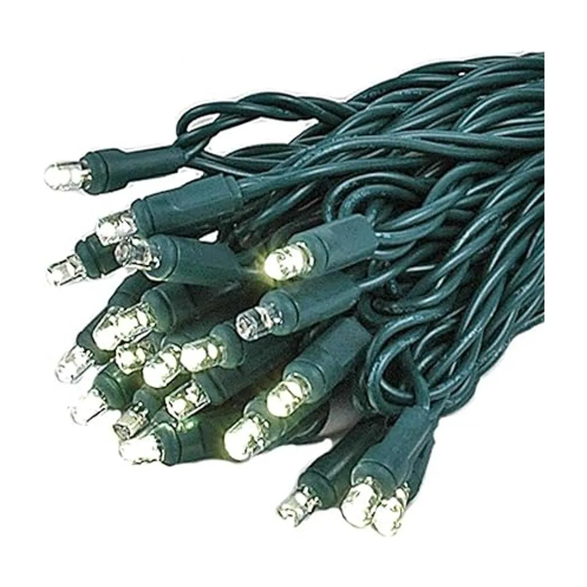 Novedad luces presenta este grado comercial calibre 22 Cable verde centelleo de Mini luz de Navidad LED que tiene 50 luces espaciados 6 apart y es de 25 de largo con 3 de alambre de plomo. Cada juego tiene 20 Bombillas twinkle y 80 Bombillas de combustión constante y proporciona una sensación de noche estrellada a su árbol de Navidad o una boda.