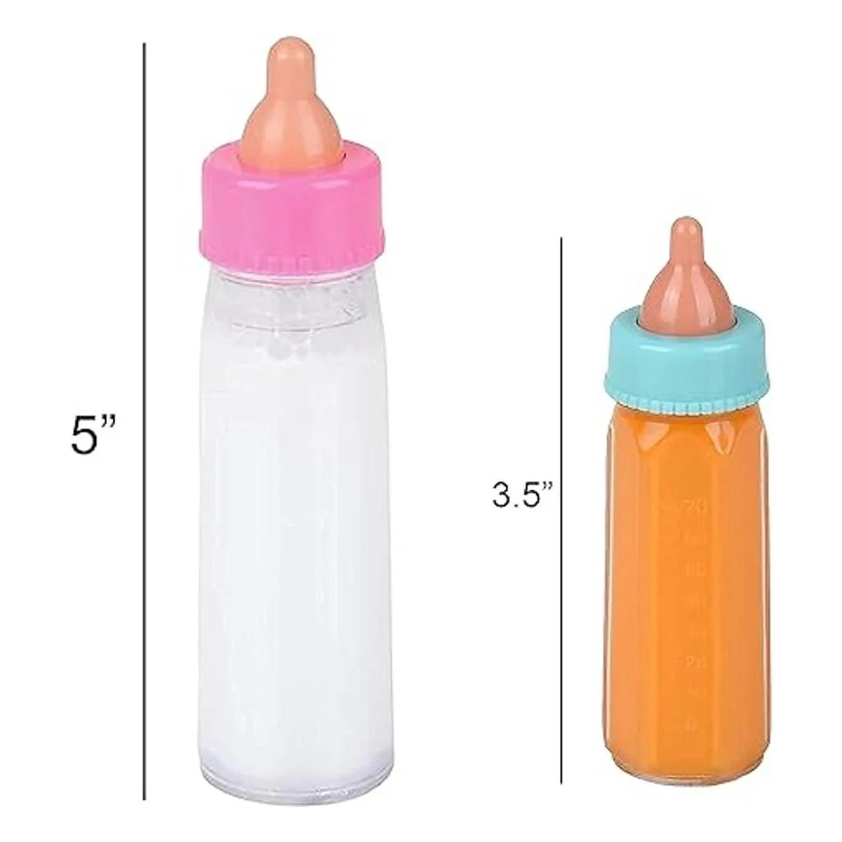 Botellas mágicas para muñecas, juego de 2 biberones de muñeca con leche y jugo desaparecientes