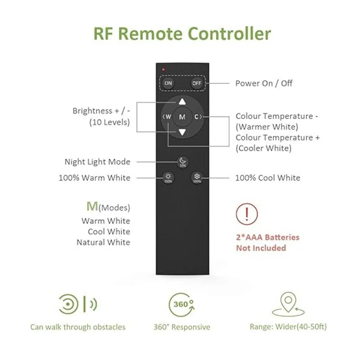 360 Upgraded RF Remote RF remote controller which can be used 360 and more accurate than IR remote, working distance is up to 40 45ft, strong Signal even penetrate walls and doors and cabinet.