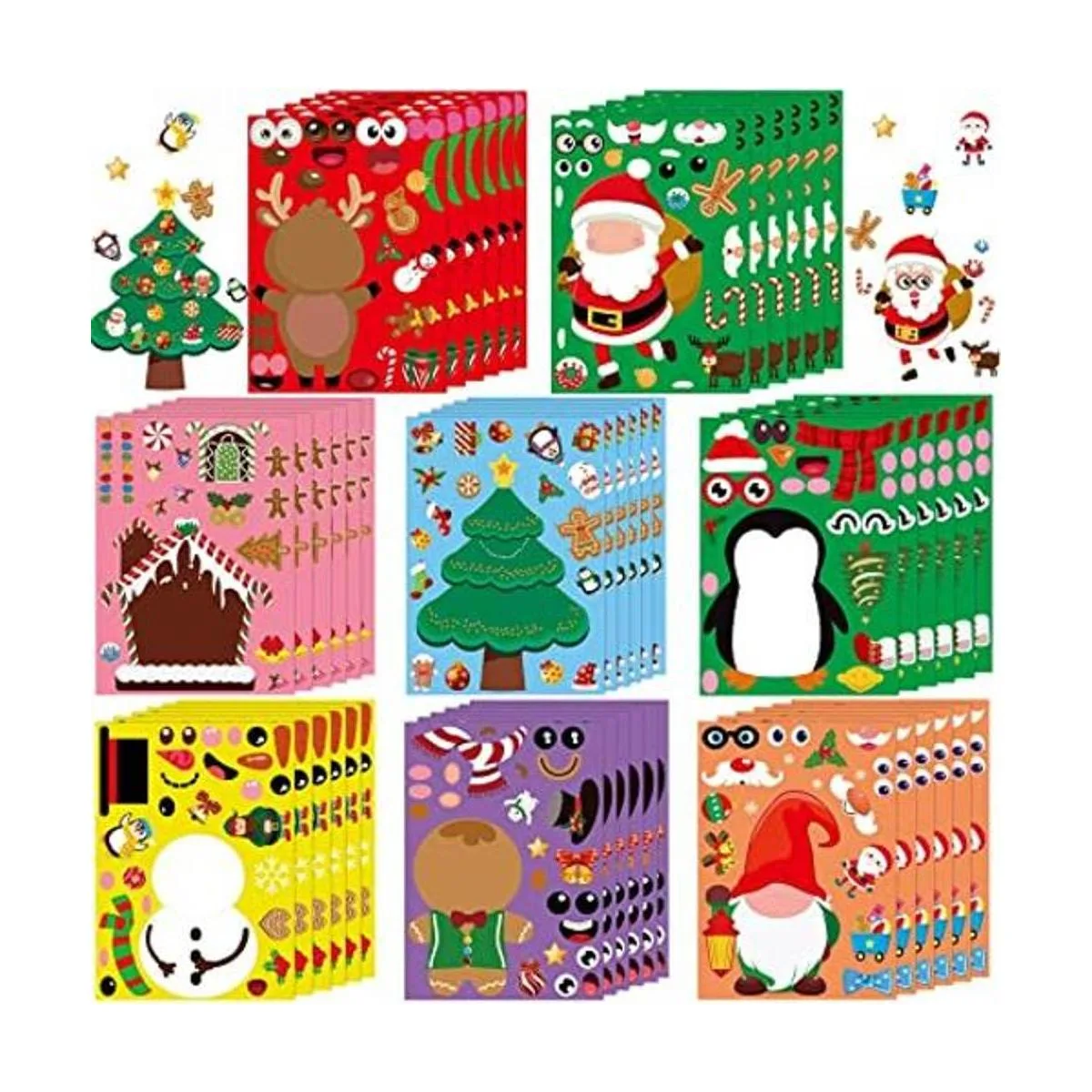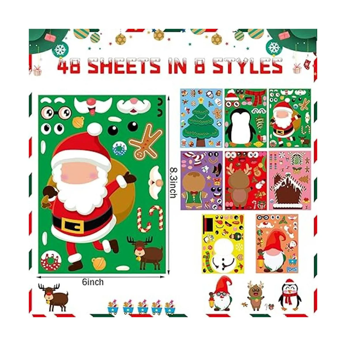 NOVWANG 48 hojas de calcomanías de Navidad para niños, calcomanías de Navidad para hacer una cara, para niños, hacer tus propias calcomanías para fiestas de Navidad, calcomanías de manualidades, calcomanías navideñas para niños y niñas, regalos de Navidad