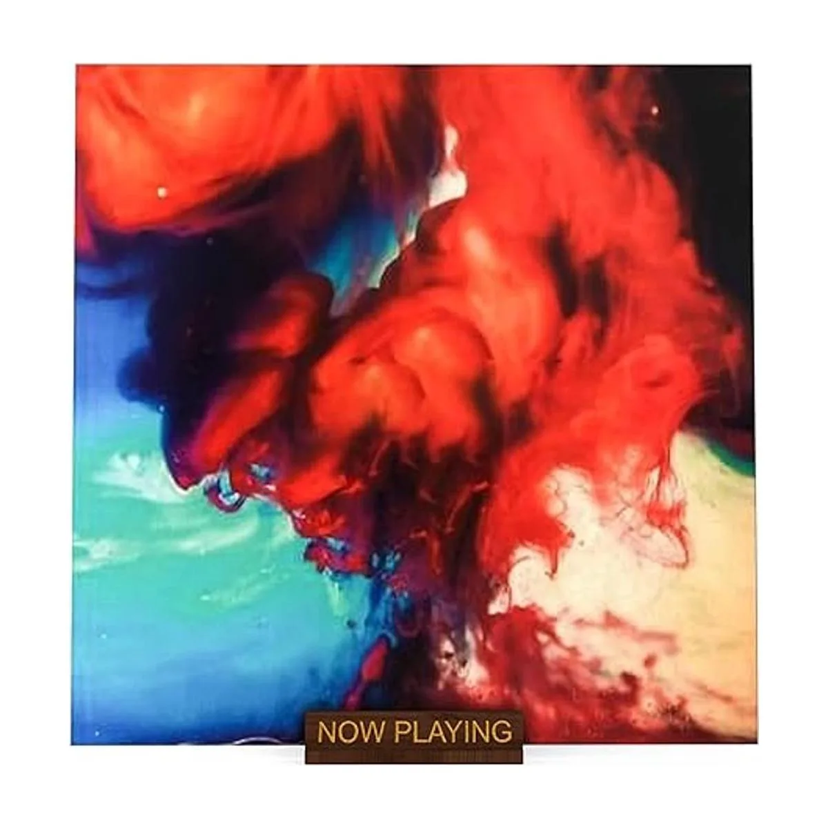 Hecho a mano y pintado a mano: nuestro estante Now Playing es perfecto para mostrar tus discos favoritos mientras giran.
