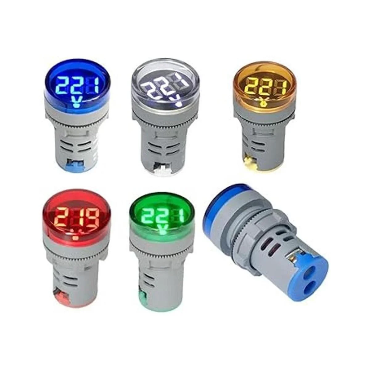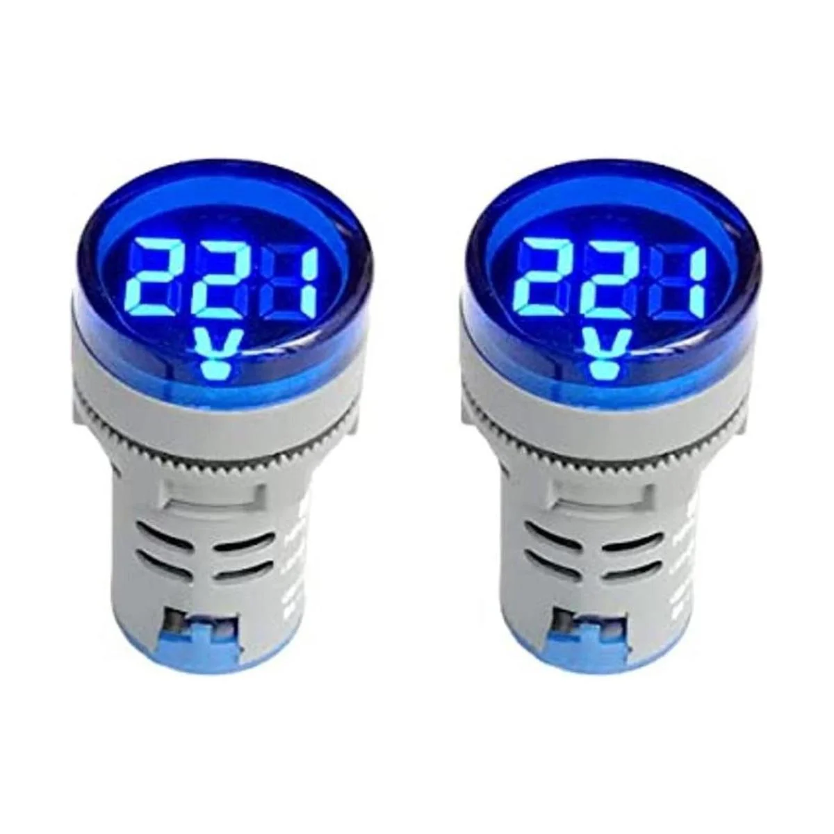 NOYITO 80500V AC voltímetro digital 110V 220V 380V rojo verde amarillo azul blanco pantalla LCD digital pequeña cabeza redonda paquete de 2 azul