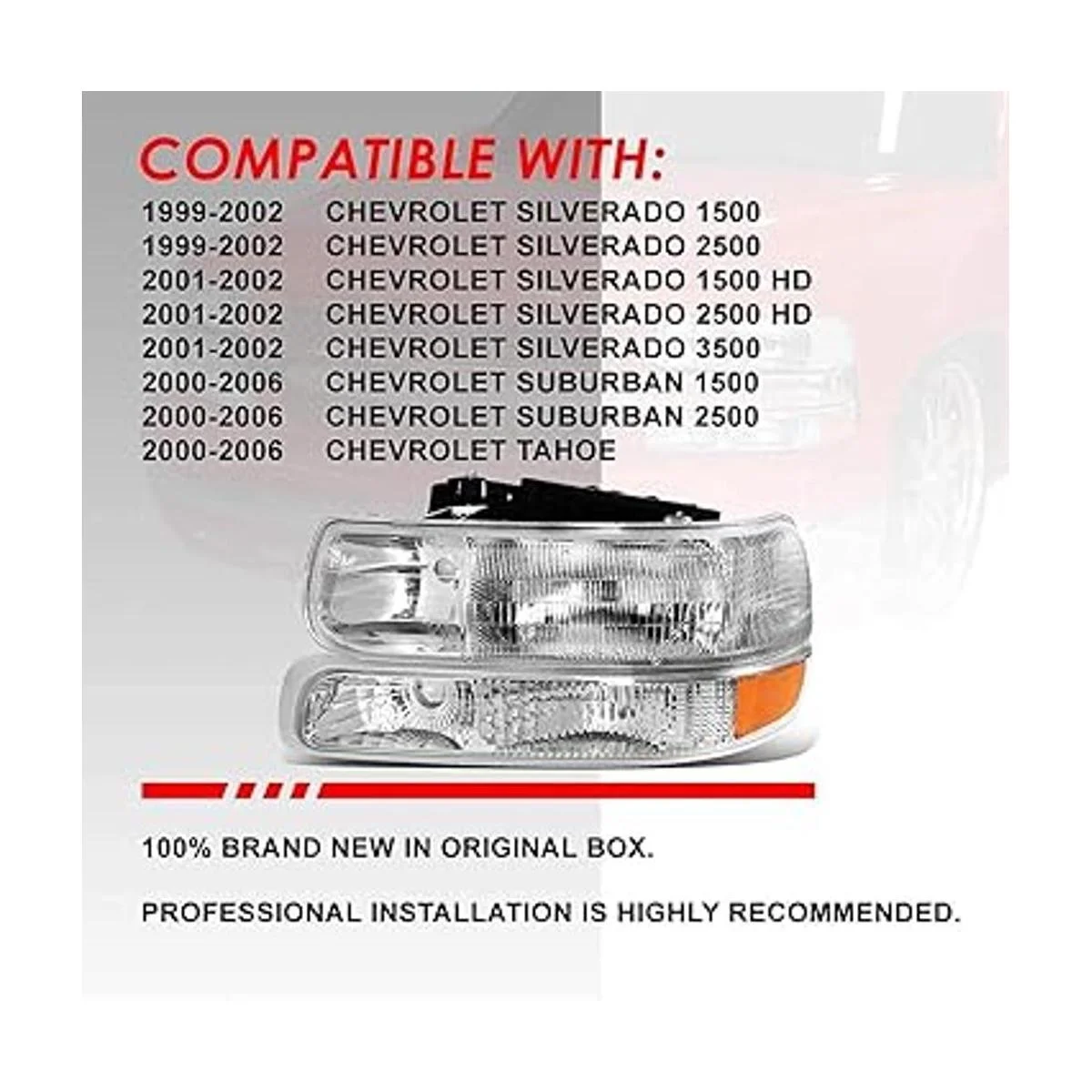 Compatibilidad con vehículos: repuesto de montaje de faros delanteros para Chevy Silverado 1500 2500 19992002, Chevy Silverado 1500HD 2500HD 3500 20002006, Chevy Suburban 1500 2500, 20002006. Chevy Tahoe No es compatible con el modelo Tahoe Z71 2000