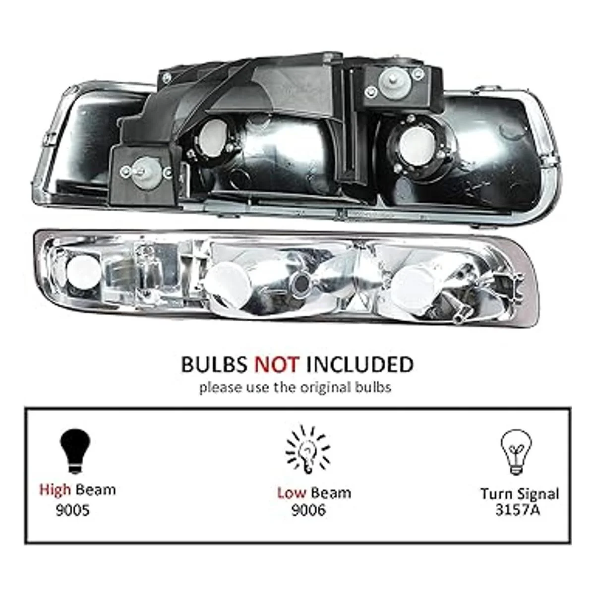 NP Juego de repuesto de faros delanteros de cristal compatible con Silverado 0006 Suburban Tahoe 9906, carcasa cromada, lente transparente