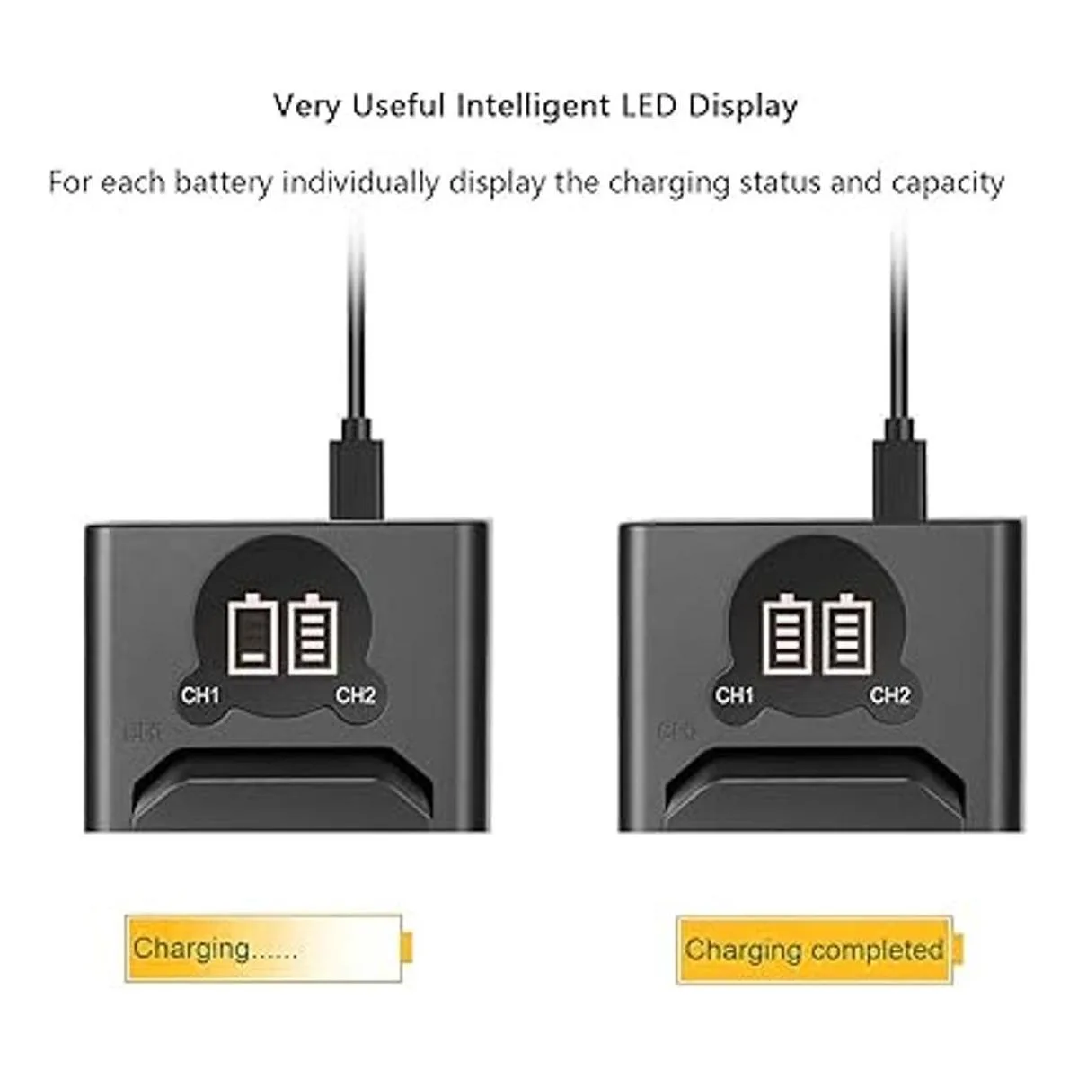 NPFW50 Cargador de batería con pantalla LED inteligente, cargador dualcargador de batería de cámara USB rápido compatible con Sony BCTRW cargador para batería NPFW50 compatible con cámaras Sony