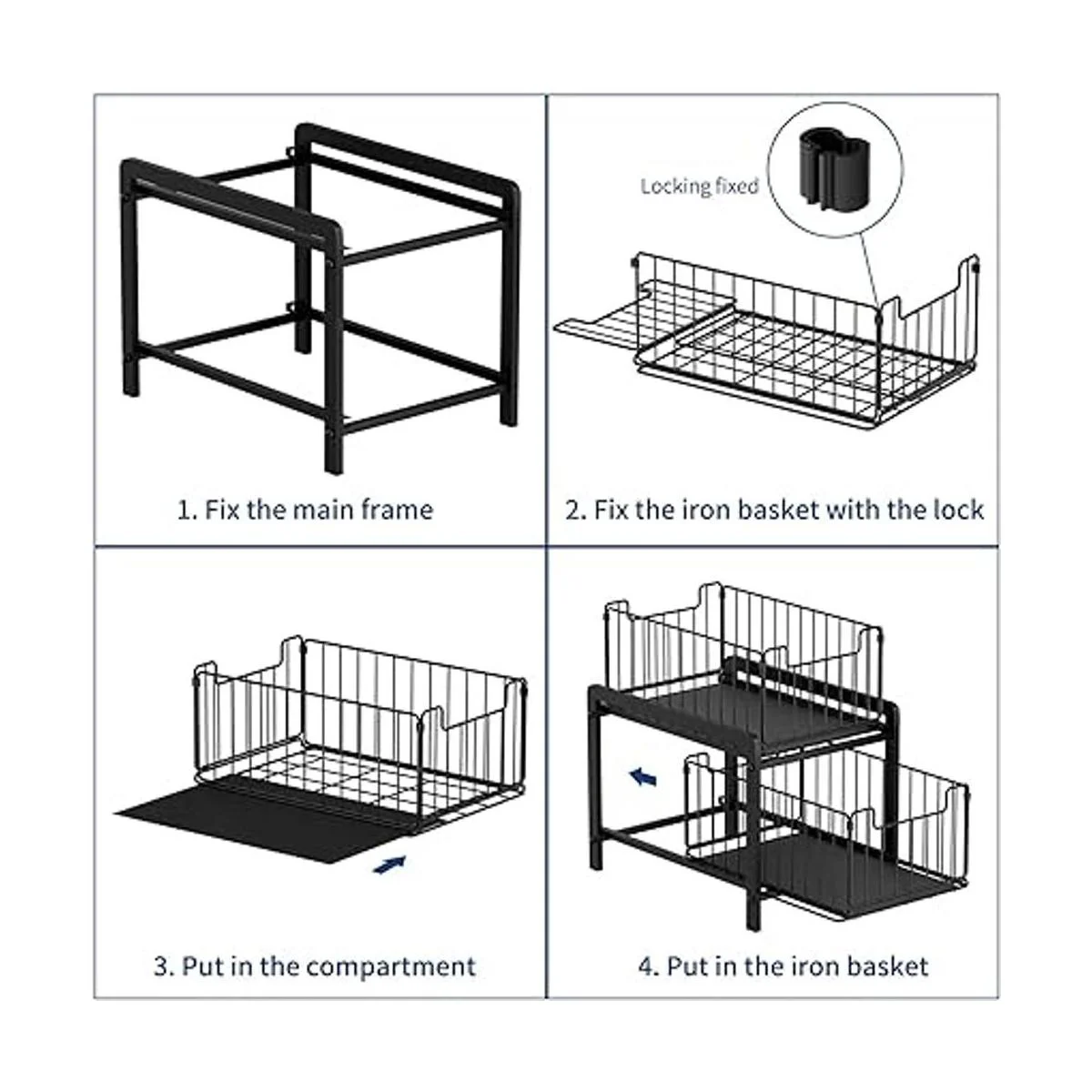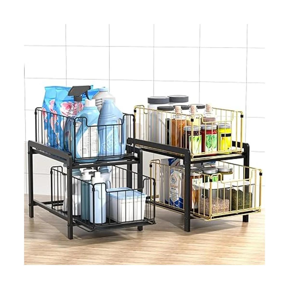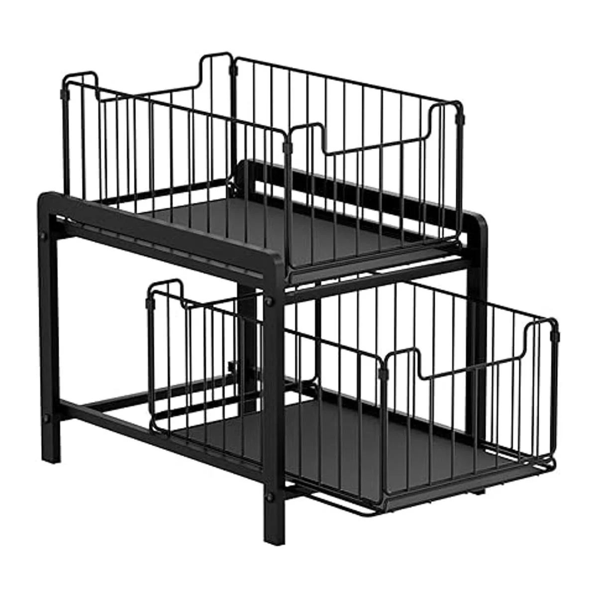 Cajones extraíbles de 2 niveles: puedes colocar tus necesidades en 2 capas, y la estructura visual de malla de hierro hace que sea fácil ver dónde quieres artículos de un vistazo. El uso razonable de tu espacio vertical puede mantener tu encimera o debajo del fregadero organizado.
