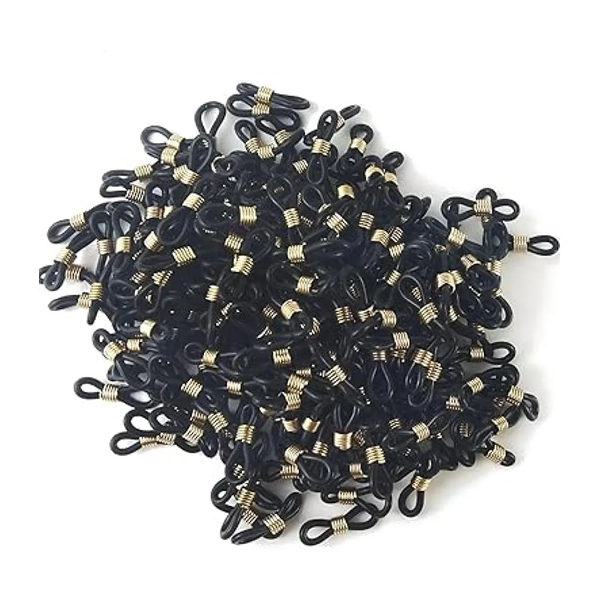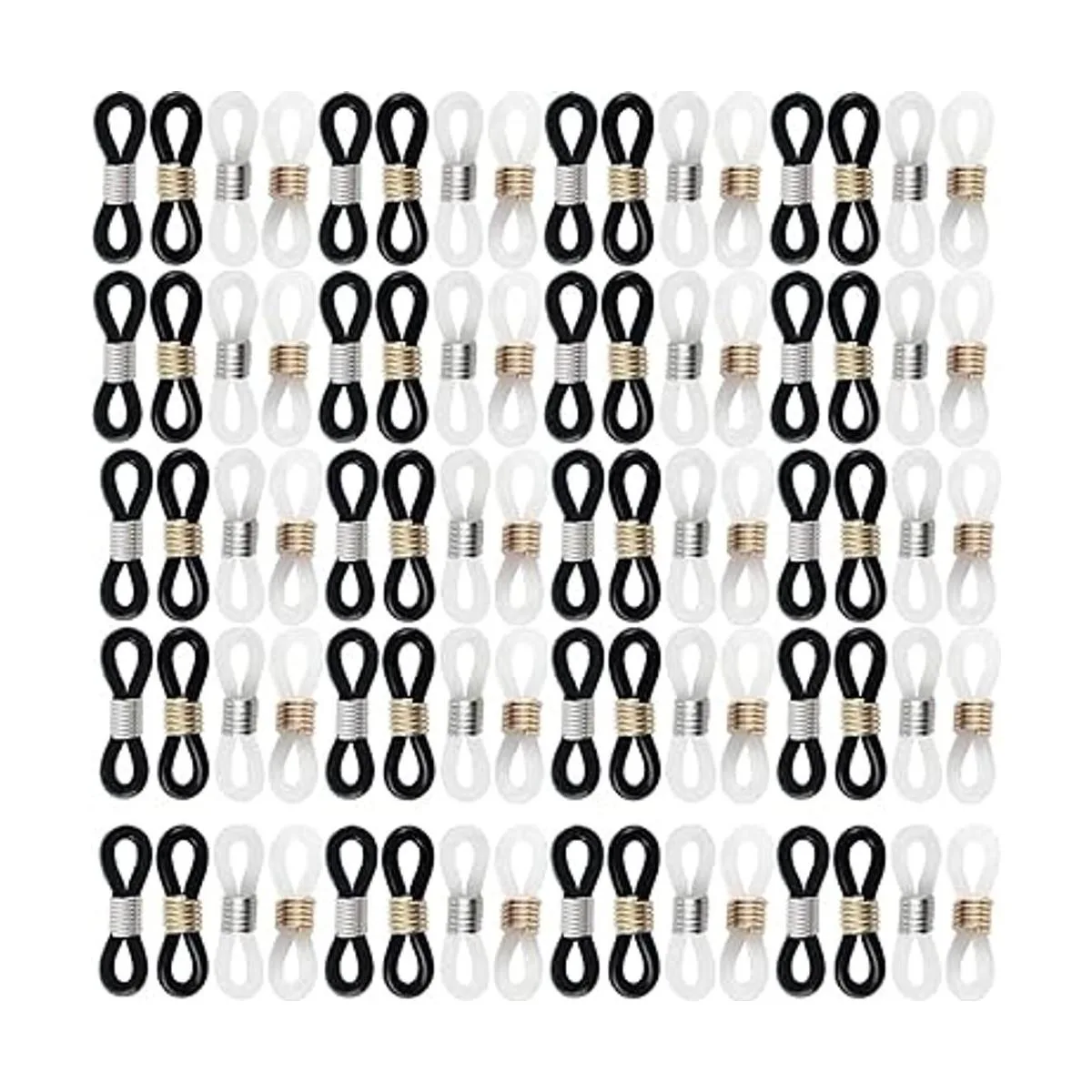 NSBELL 300 piezas de extremos de cadena de lentes antideslizantes de silicona con resorte para conector de goma para gafas, gafas de sol, collar, cadena, gafas, cadena de gafas, conector de silicona para gafas, Black and Gold, White, S