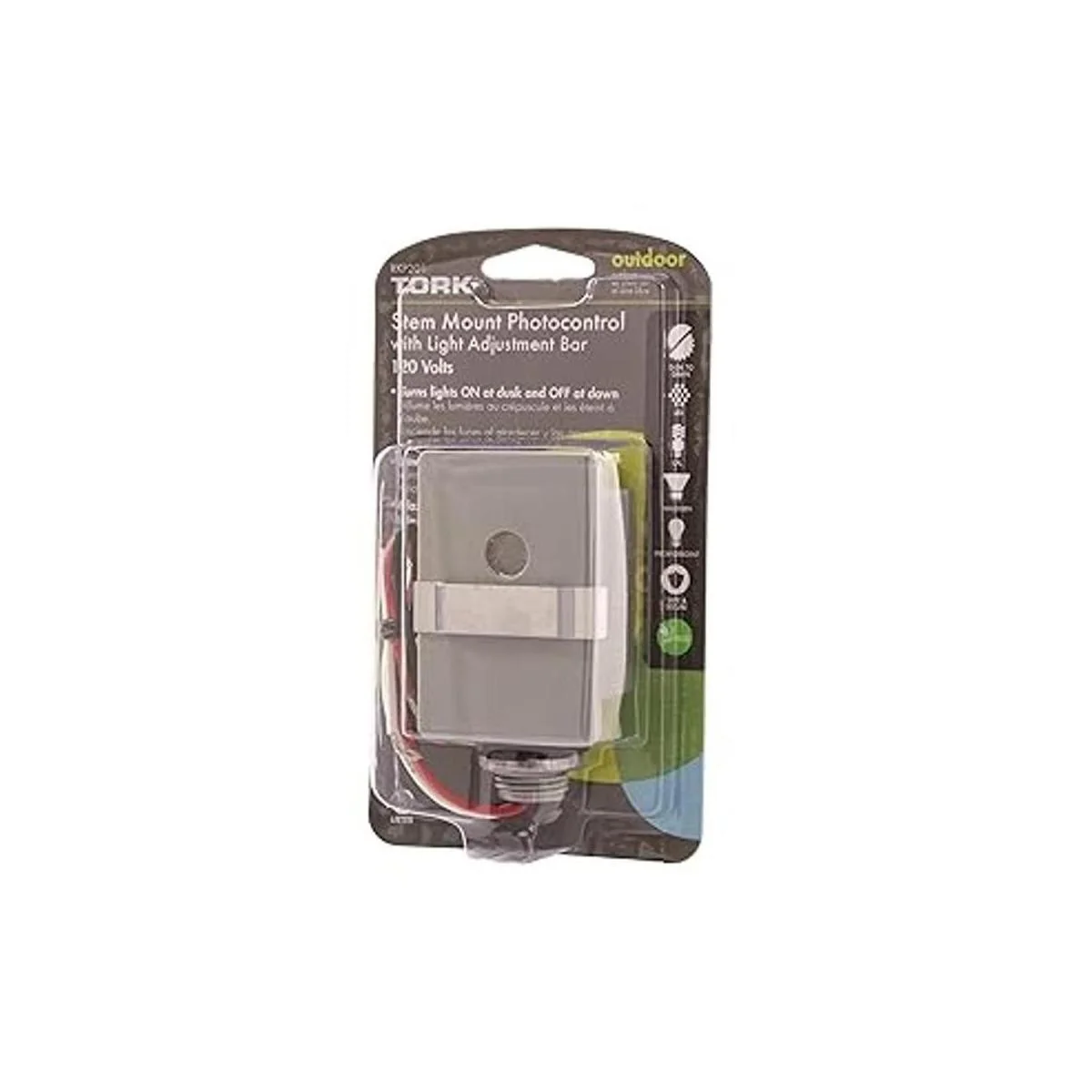 NSi Industries TORK RKP201 Fotocontrol de montaje de vástago de 120 voltios con barra de ajuste de luz, controla la iluminación del atardecer al amanecer, compatible con incandescentefluorescente compactohalógenoLED