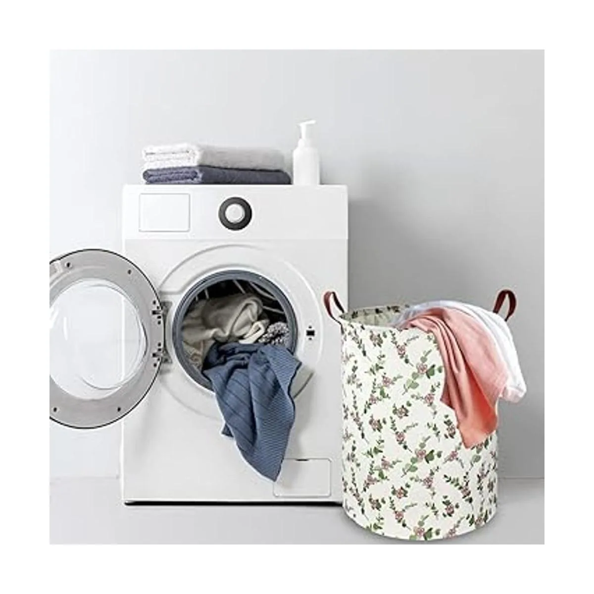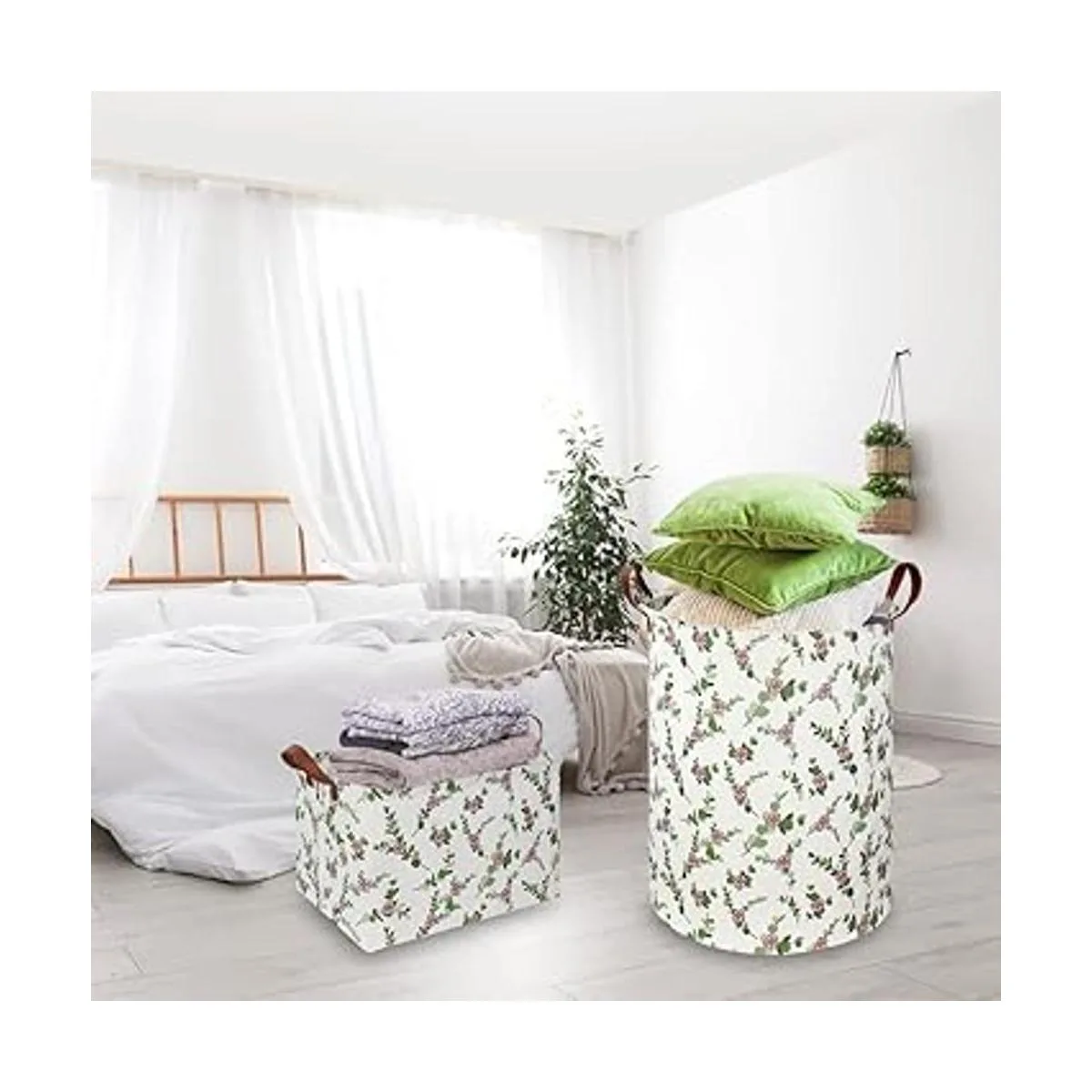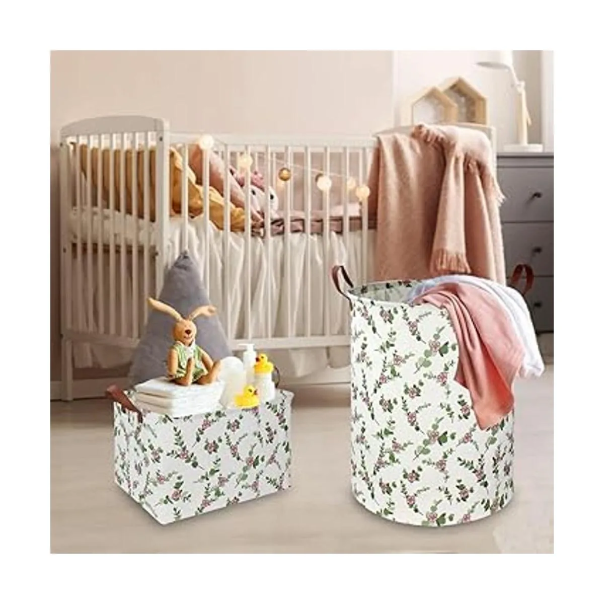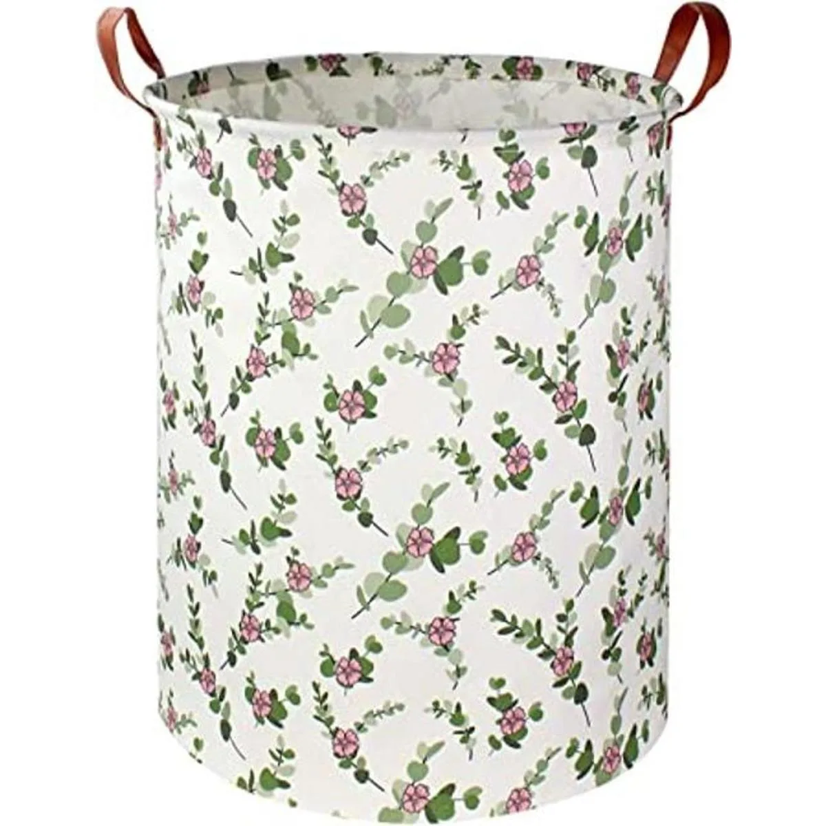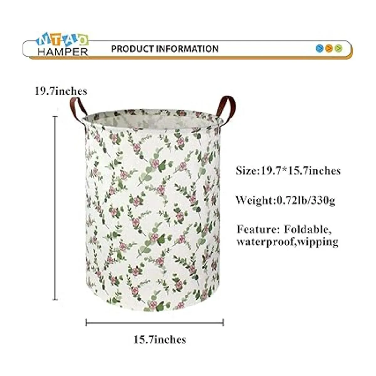 NTAOHAMPER Cesta redonda grande de lino de lona, contenedor de almacenamiento impermeable para juguetes, libros, ropa, mascotas, cesta de lavandería, cesta de regalo hojas de eucalipto