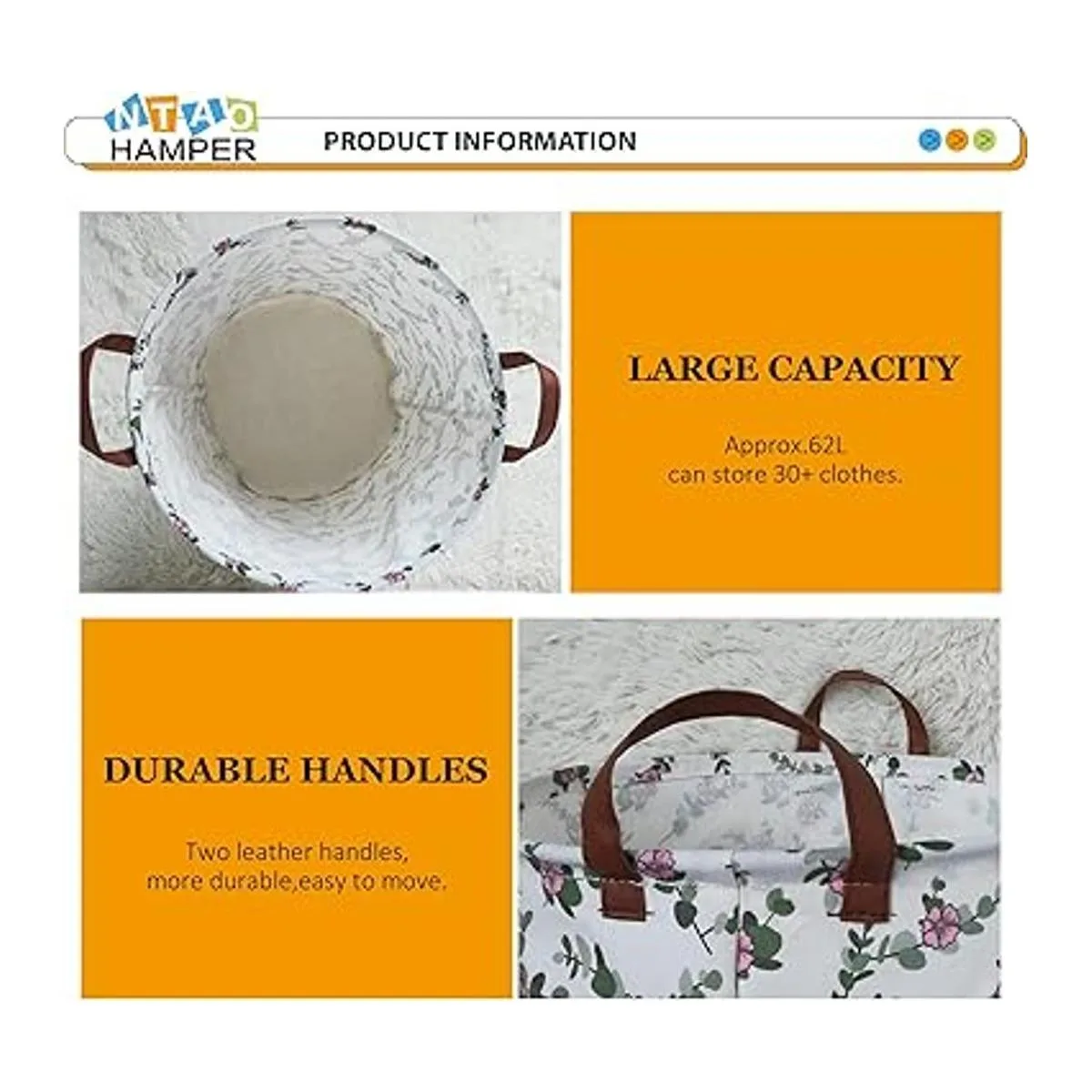 Material: la cesta de lavandería de alta calidad está hecha de tela de lino y algodón, mango de cuero y forro de revestimiento de polietileno impermeable.