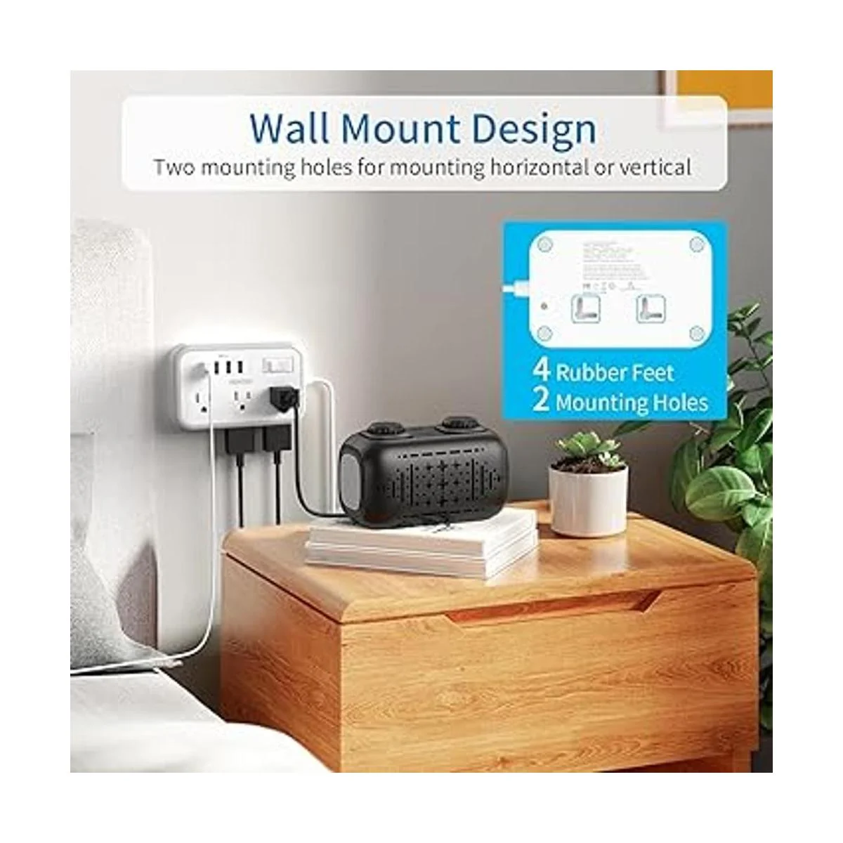 Dos métodos de montaje y amplio espacio: los dos agujeros de montaje 2 tornillos y plantilla de montaje incluida permiten que esta tira de alimentación de montaje en pared se instale en varias aplicaciones horizontal o verticalmente, como bancos de trabajo, pared, mostrador, dormitorio y mucho más. Ahorra espacio para ti. Las salidas están lo suficientemente separadas como para adaptarse a enchufes grandes de transformación sin bloquearse entre sí preferiblemente 1.6 pulgadas de ancho.