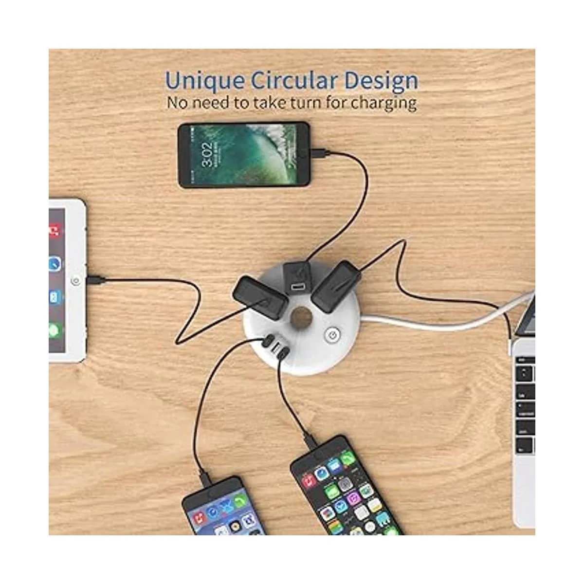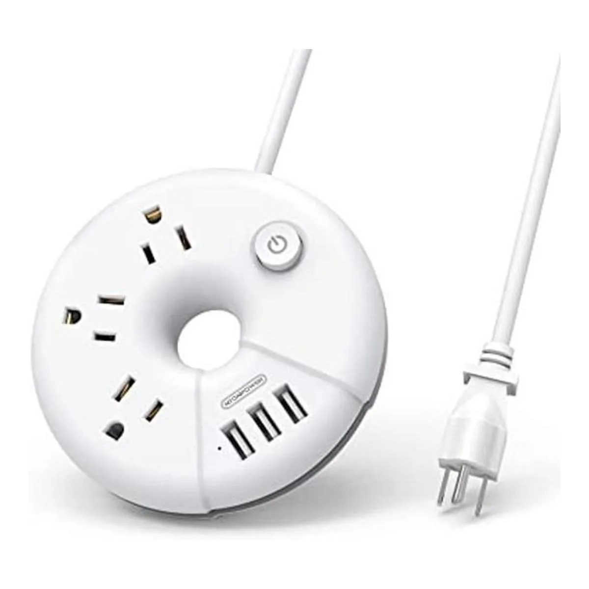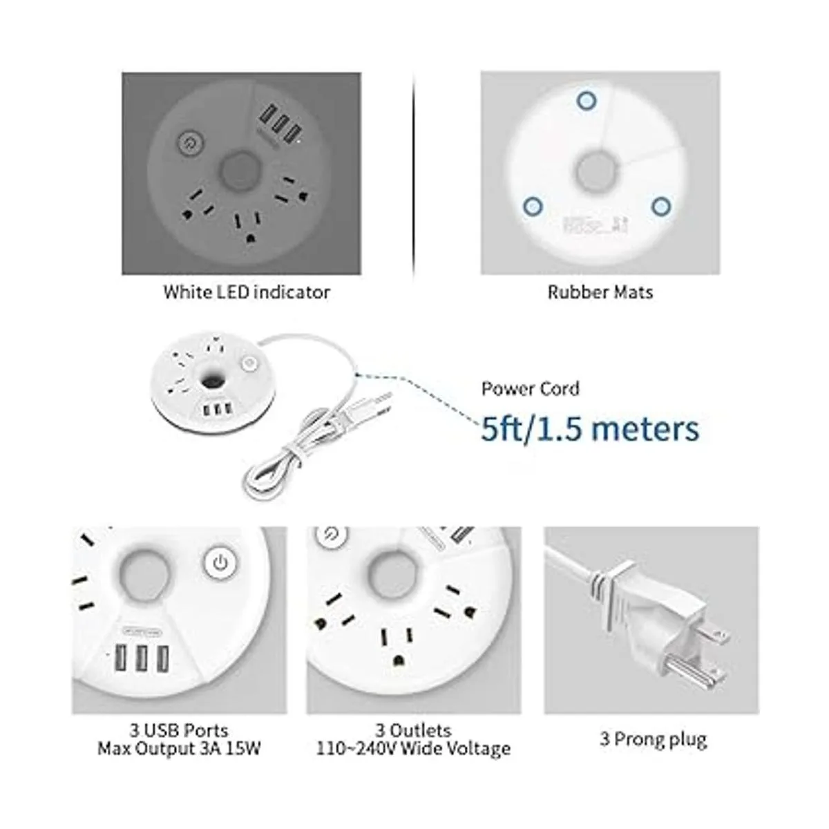 Cable de extensión de tira de alimentación con múltiples tomas y USB: la tira de alimentación USB de escritorio con interruptor viene con 3 salidas de CA, 3 puertos de carga USB y soporta una amplia gama de voltaje 100240 V, por lo que puedes cargar simultáneamente tu iPhone, iPad, cámara, smartphone, laptop o tableta cuando viajas al extranjero. Nunca tendrás que preocuparte de que te falten tomas de corriente para tus dispositivos con regleta circular.