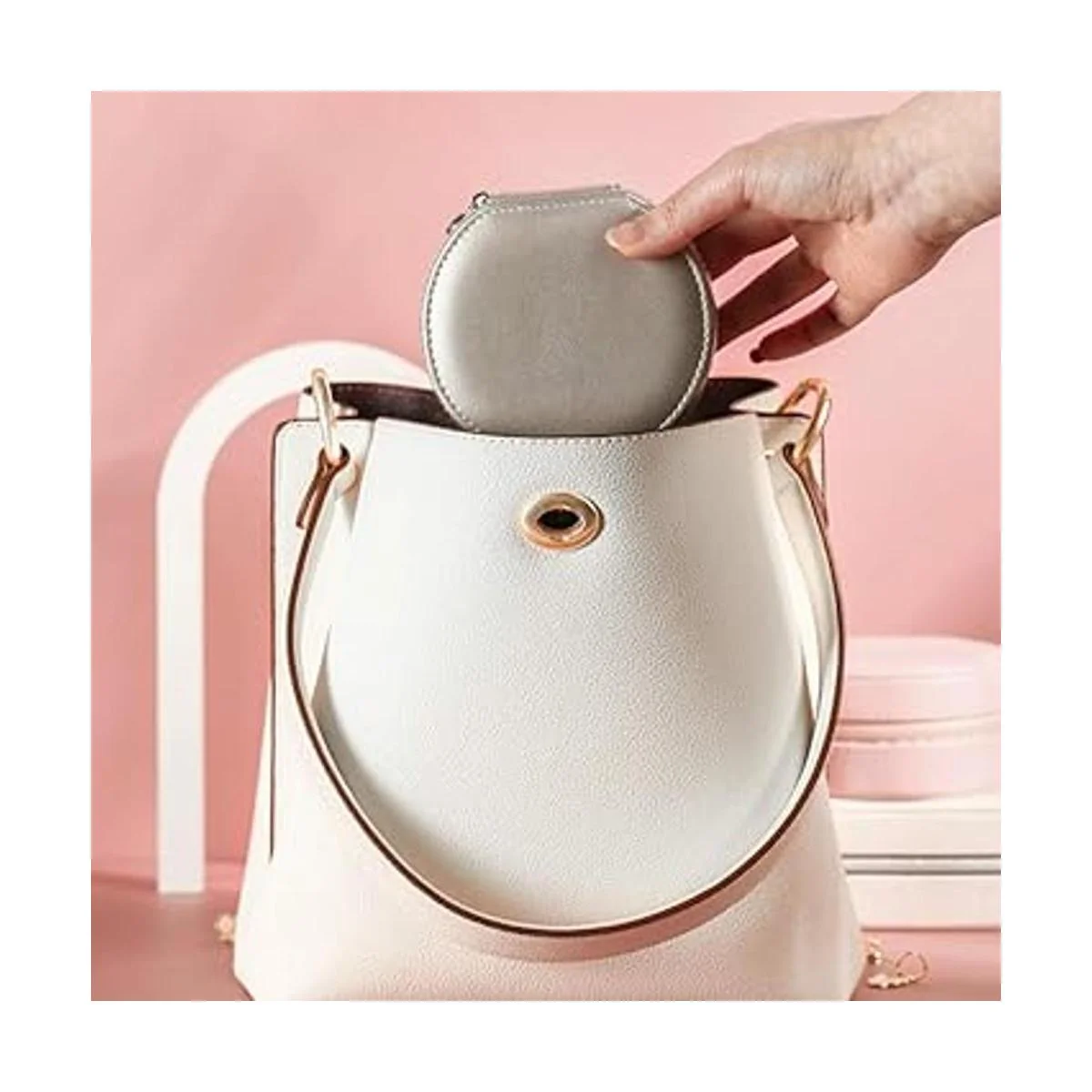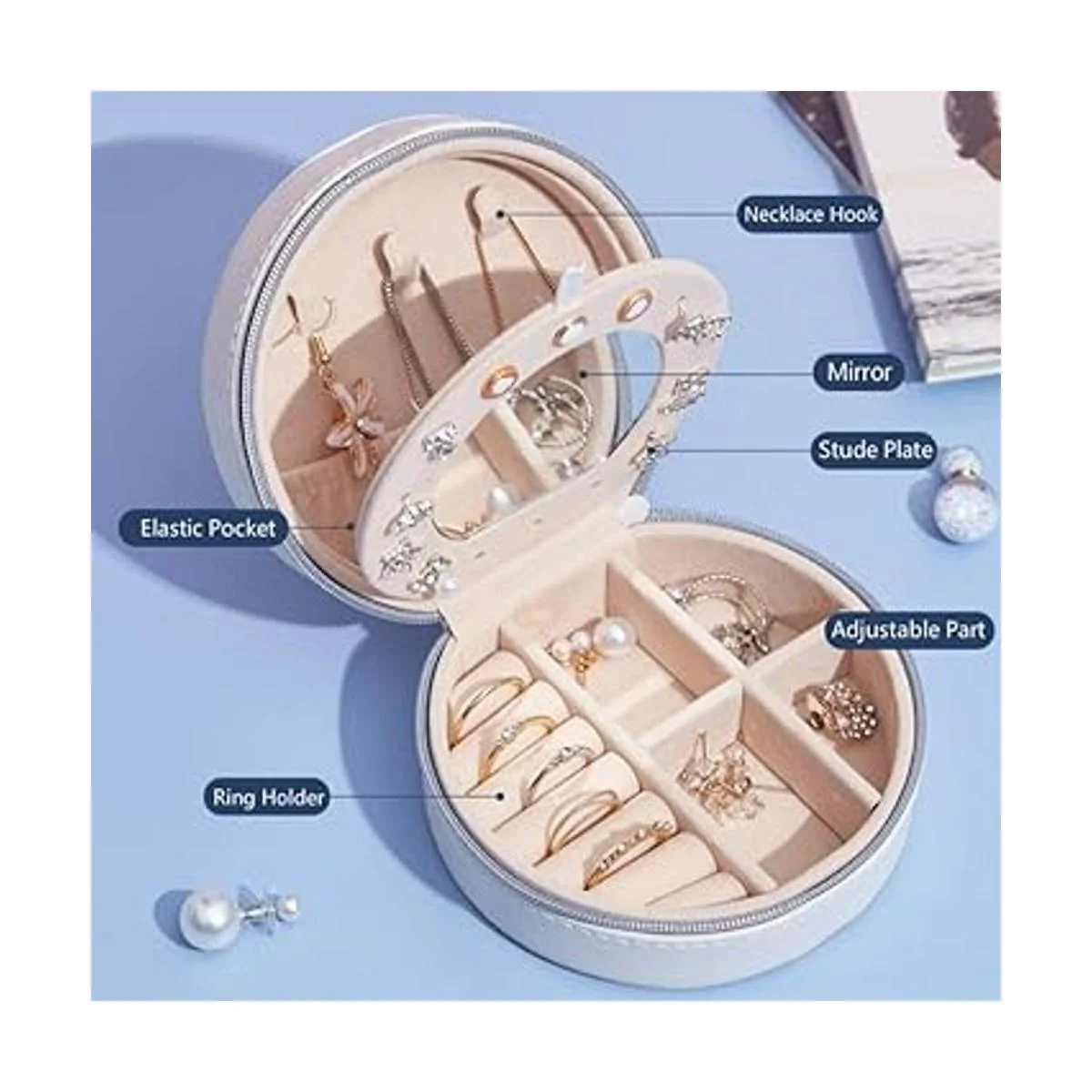 Tamaño de viaje: 3.9 x 3.9 x 2 pulgadas, caja de joyería pequeña portátil y ligera, se puede llevar fácilmente en tu bolso o equipaje.