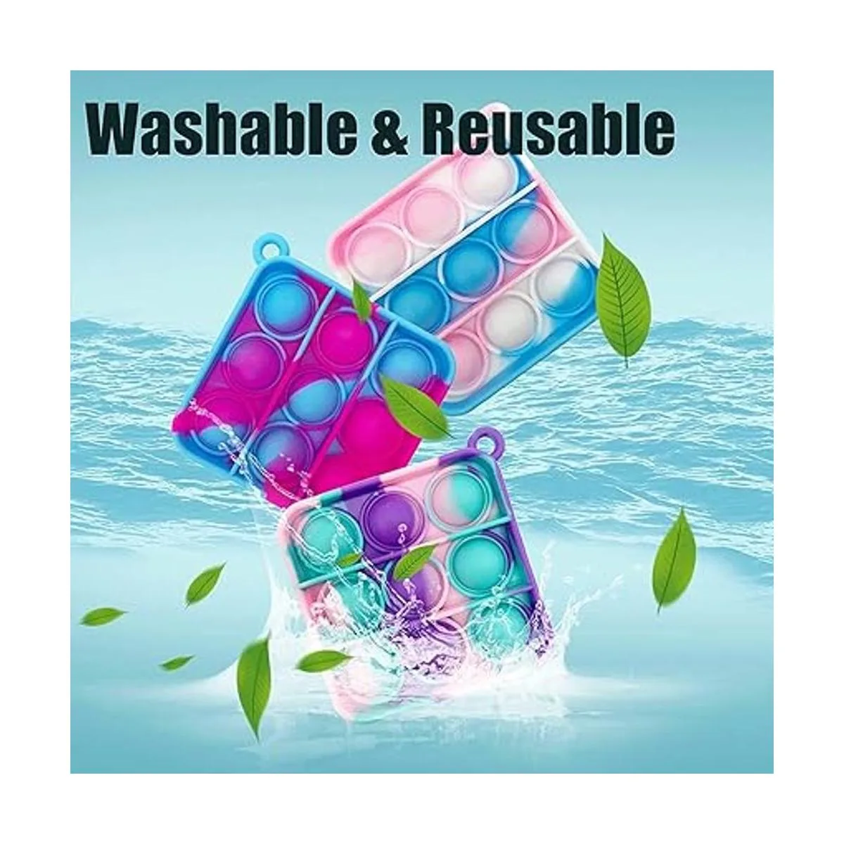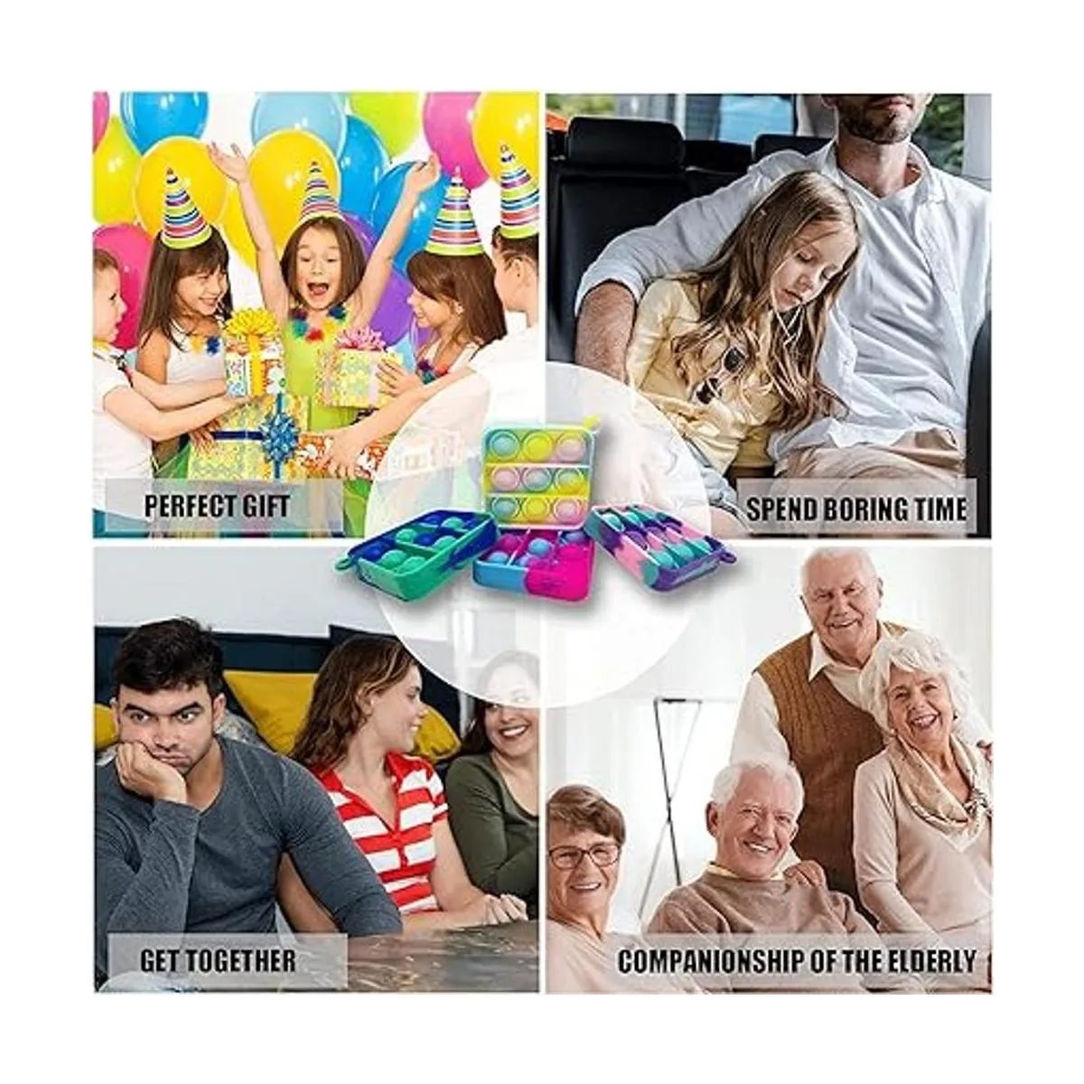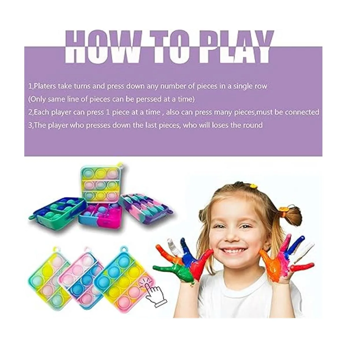 Entretenimiento y alivio del estrés: estos mini juguetes son ideales para todos. Para los niños, este mini pop a granel puede mejorar la capacidad de cálculo y pensamiento. Para adultos, alivia el estrés y mantiene el cerebro activo, previene la degeneración. Es un buen ayudante para aliviar la ansiedad. Al apretar nuestro llavero de burbujas de silicona, puedes obtener comodidad mental y liberación emocional.