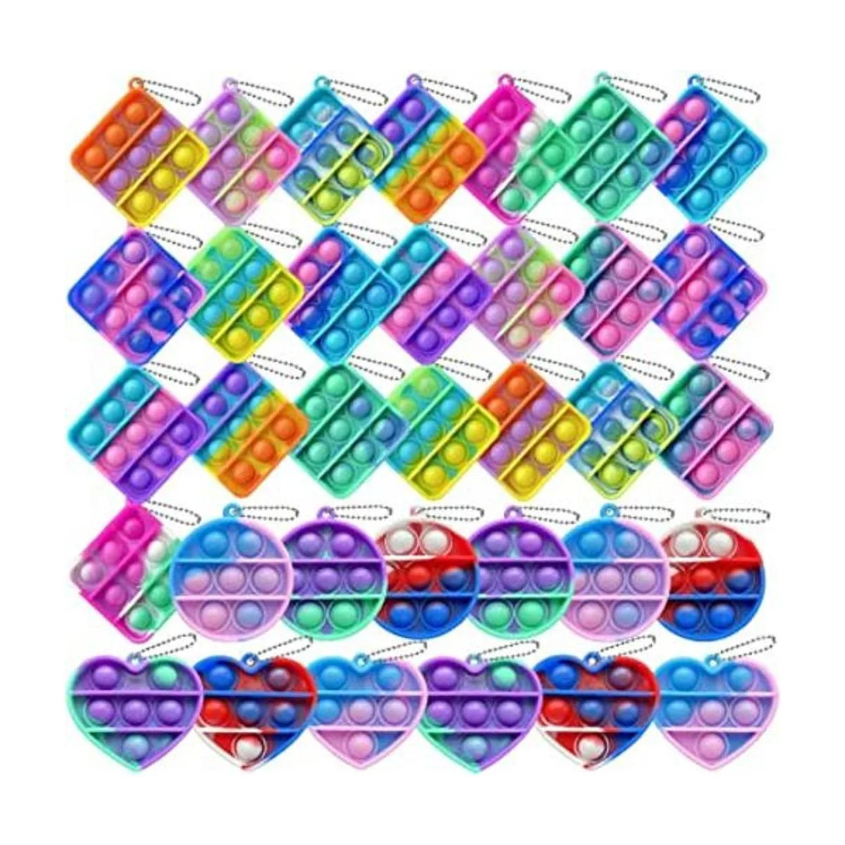 Diseño de moda : el mini paquete de juguetes para presionar contiene 50 piezas de juguetes en diferentes colores. El nuevo llavero cuadrado colorido es moderno y lindo. El diseño de agujero para colgar y reventar tamaño a mano es más conveniente para el almacenamiento, adecuado para estudiantes, trabajadores de oficina y entretenimiento diario