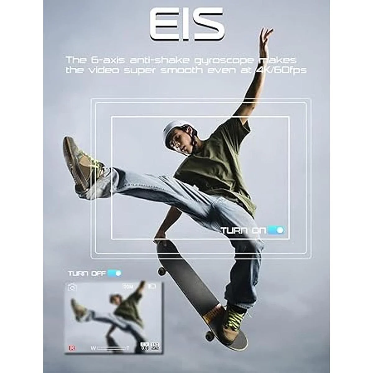 Cámara EIS nativa 4K/60fps: la cámara de acción Apexcam X60Pro cuenta con video de 4K/60fps e imágenes de 20mp; estabilización electrónica de imagen integrada EIS con giroscopio de 6 ejes, función de calibración de distorsión que ofrece colores bastante ricos y movimientos fluidos, captura todas las maravillas del mundo en una fantástica resolución.