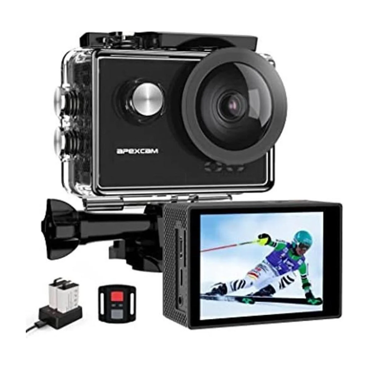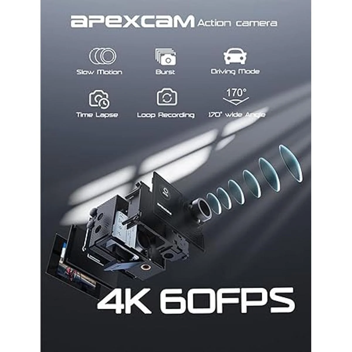 Nuevo 2022 Apexcam 4K 60FPS Cámara de acción EIS Estabilización 20MP Cámara deportiva 40M Cámara submarina impermeable 8X Soporte de zoom micrófono externo con control remoto, 2 pilas recargables de 1350 mAh