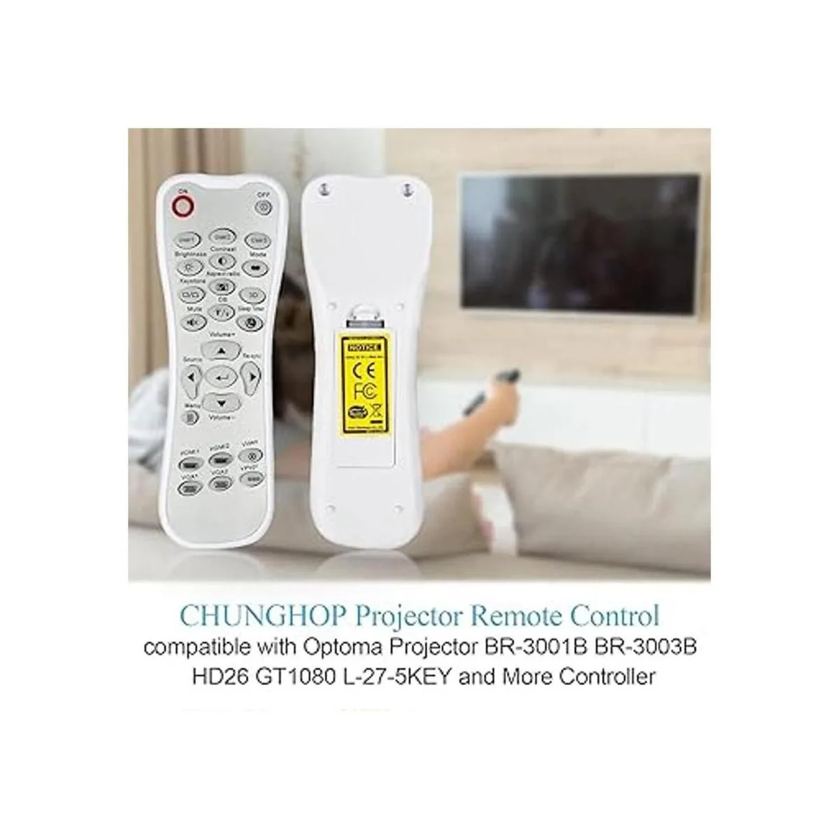 Compatible con proyector optoma HD26, X412, HD26B, HD26BR, UHD300X, GT1080, GT1080E, GT1080DARBEE, GT1070X, VDGTGZBZ, GT1070Xe, HD141X, HD143X, H181X, DH1008, DH108, DH108, DH108, DH108, DH108. H1009 , HD37, UHD60, HDF536, HDF537ST, HD200D, HD39DARBEE, VDHDNBDSE, UHD65, HD27, HD27E, HD27HDR, HD29DARBEE, EH200ST, EH412ST, GT5600, VDHDNL, HD121222221 42X, HD1 44X, HD152X, UHD550X, HD28HDR, HD28DSE, UHD40, UHD50, UHZ65, VDUHDLZ, ZH403, HD39HDR, UHD35. Comprueba que tu mando a distancia original sea 100 igual que el nuestro, de lo contrario nuestro mando a distancia no funcionará con tu dispositivo