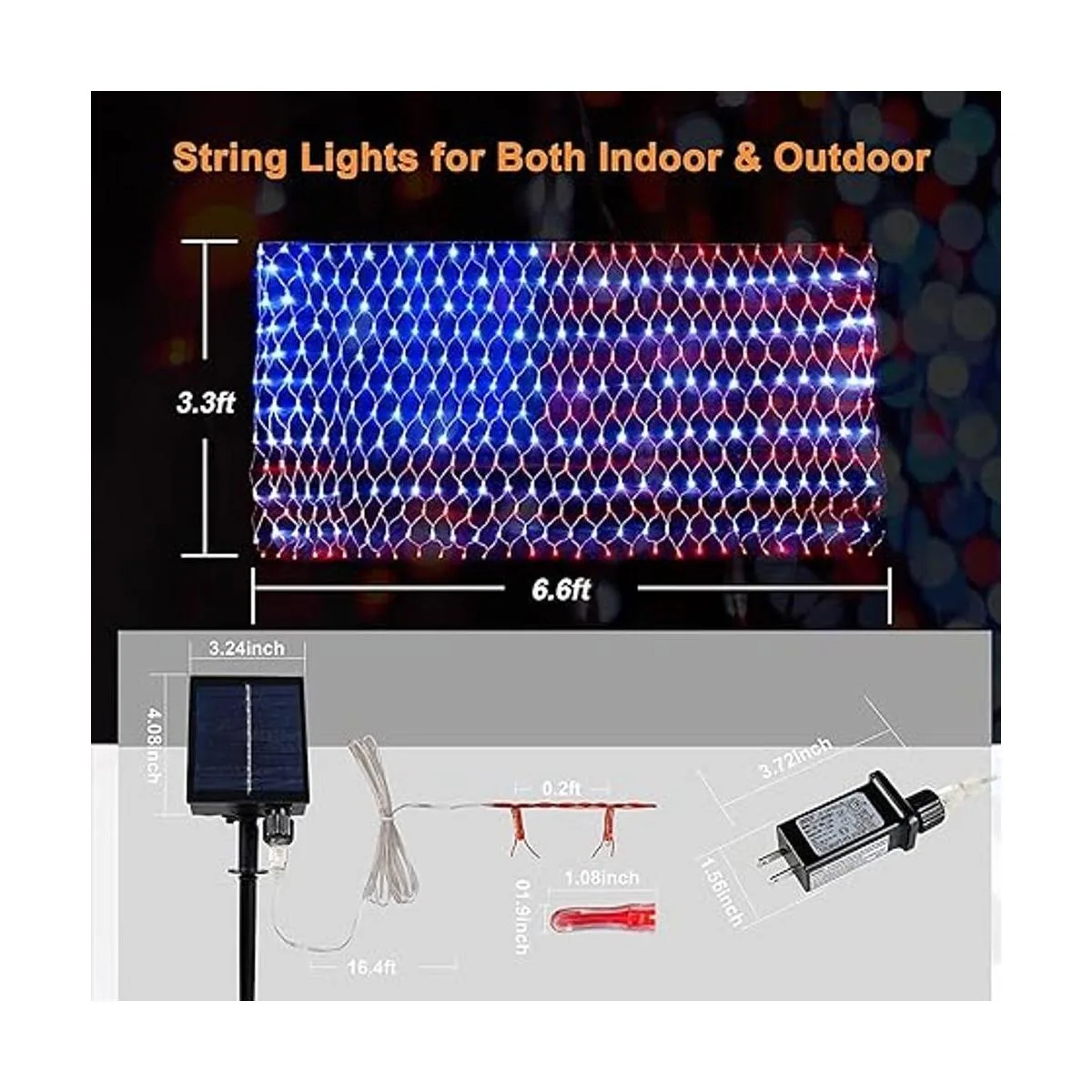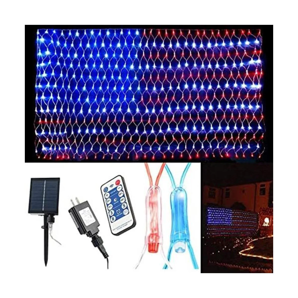 Nuevo Luces de bandera estadounidense, 2 en 1 con enchufe y energía solar, 420 luces LED de red de bandera, luces patrióticas impermeables para Navidad, Día de la Independencia, fiesta, 4 de julio