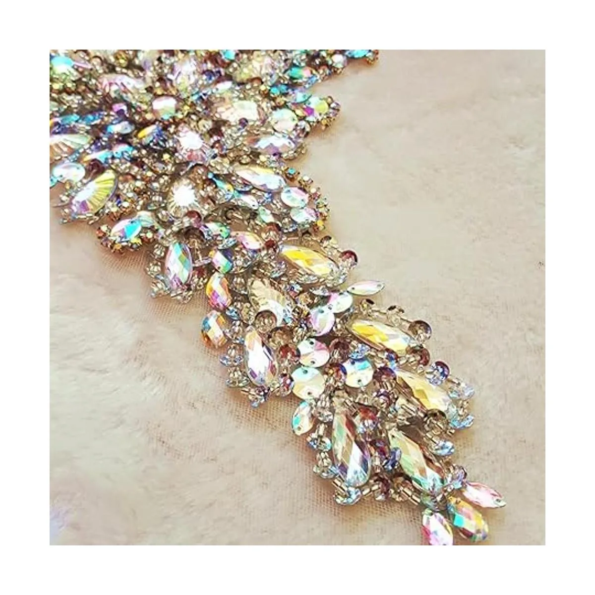 Nuevos exquisitos parches de cristal brillante hechos a mano con diamantes de imitación para coser con piedras y lentejuelas para vestido de boda, accesorios manuales, cinturón de decoración de cintura, 7.1 x 15.0 in AB