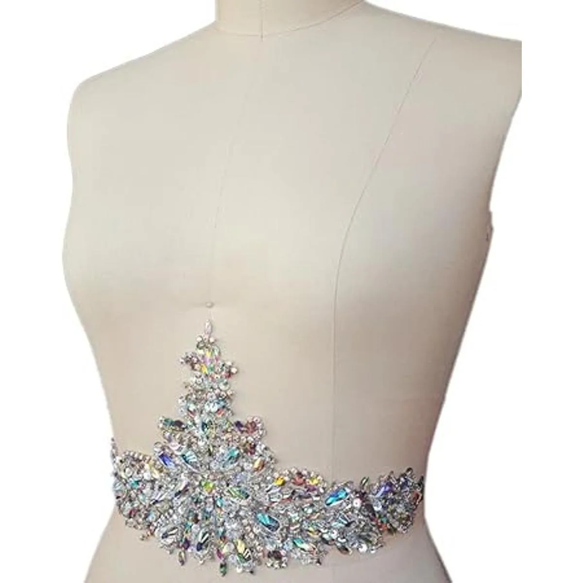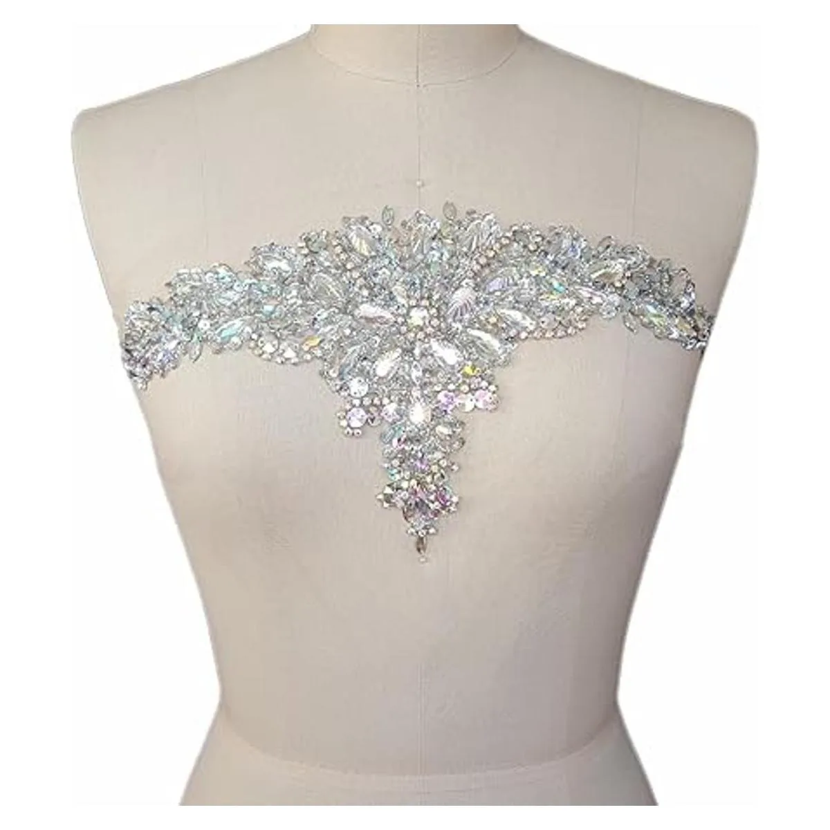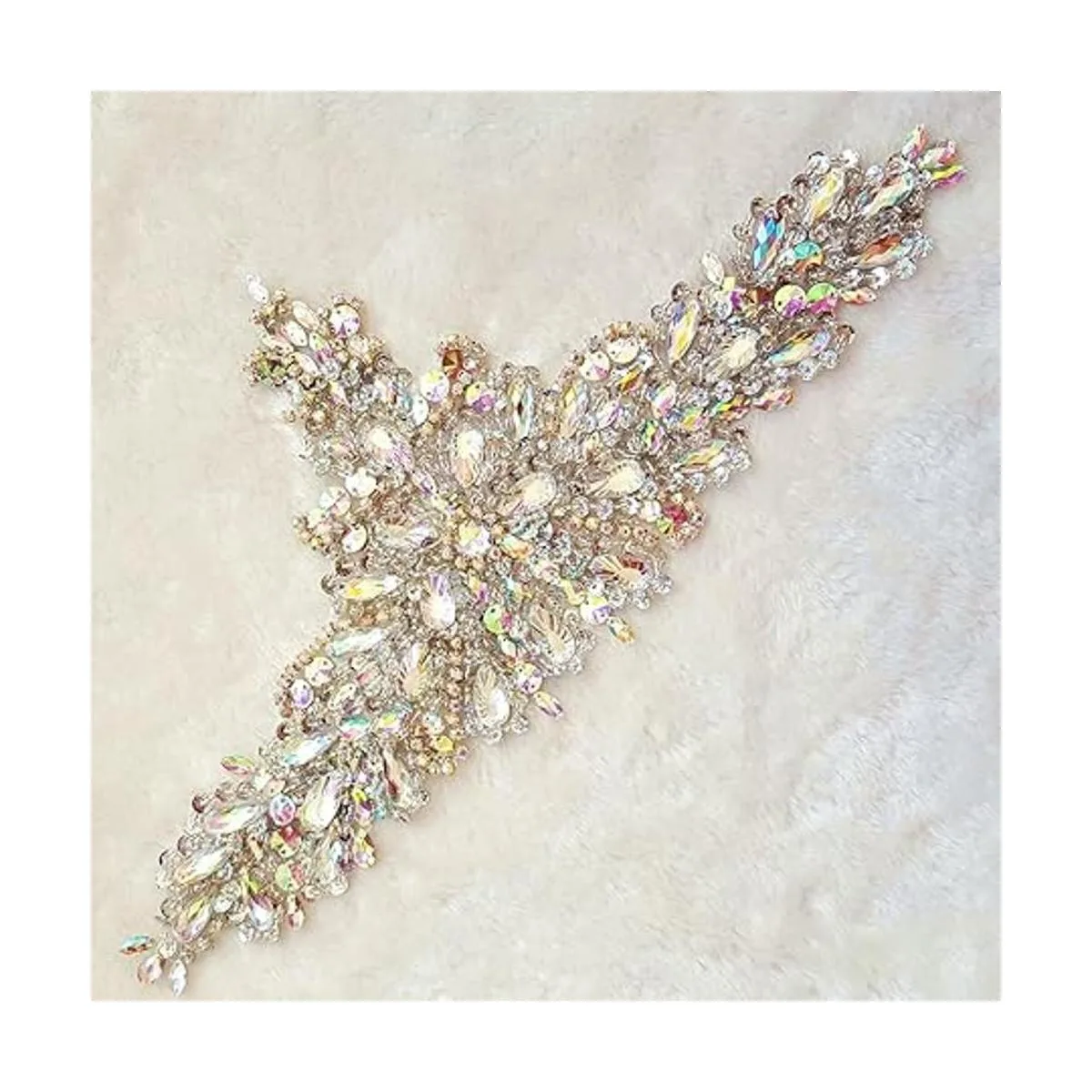 Nuevos exquisitos parches de cristal brillante hechos a mano con diamantes de imitación para coser con piedras y lentejuelas para vestido de boda, accesorios manuales, cinturón de decoración de cintura, 7.1 x 15.0 in (AB)