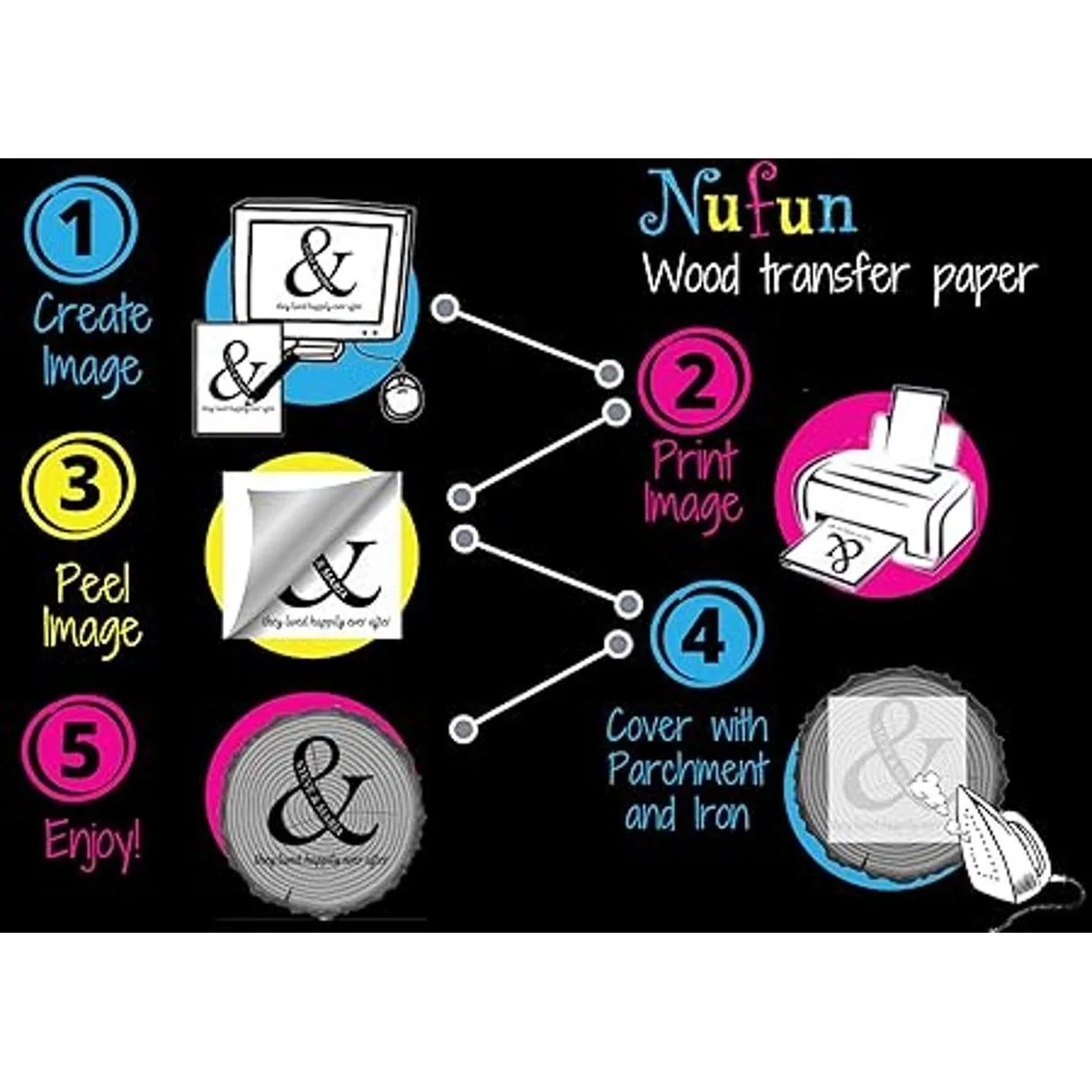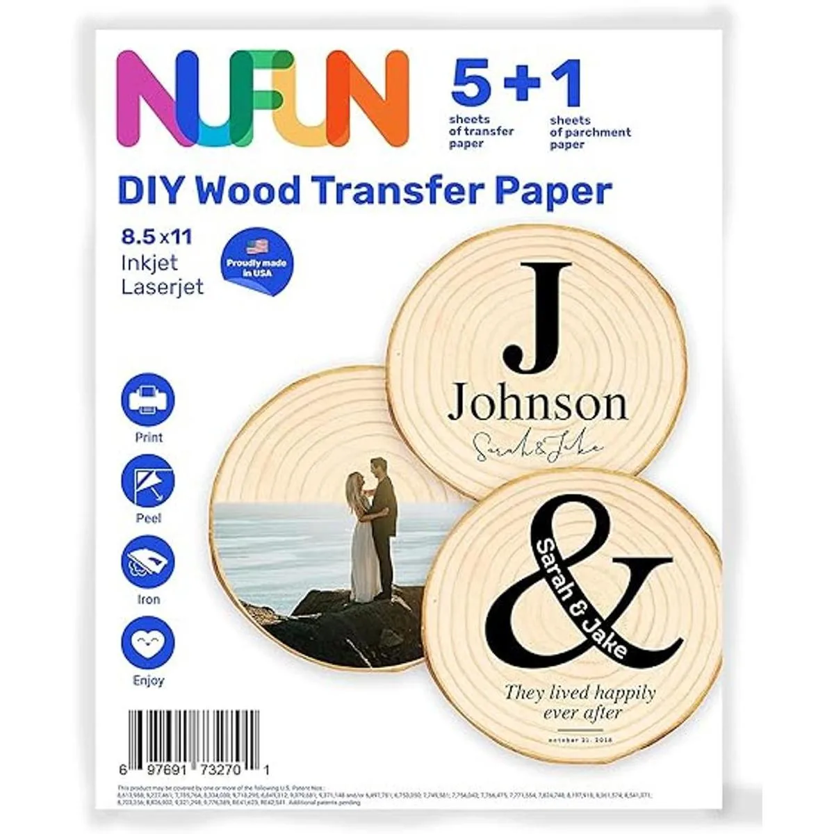 NuFun Activities Papel de transferencia de calor imprimible por inyección de tinta para madera, 8.5 x 11 pulgadas 5 hojas