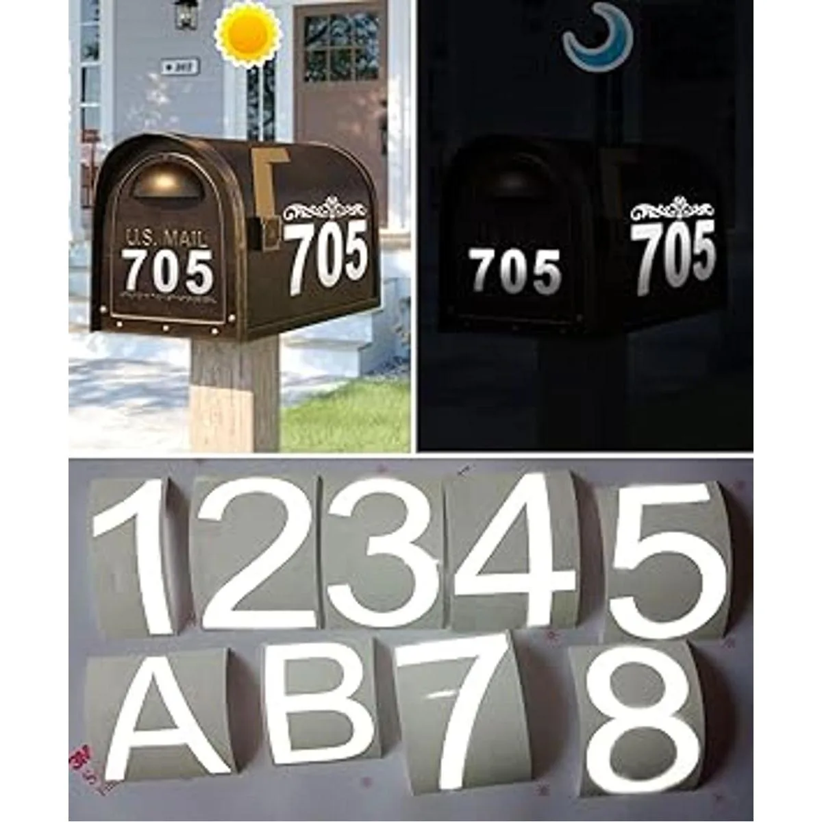 Calcomanías reflectantes con números de buzón: nuestras calcomanías para números de buzón están cortadas de vinilo reflectante de alta calidad. Tienen un fuerte efecto reflectante bajo las luces por la noche. Puede ayudar a tu amigo o cartero a ver fácilmente tu dirección por la noche