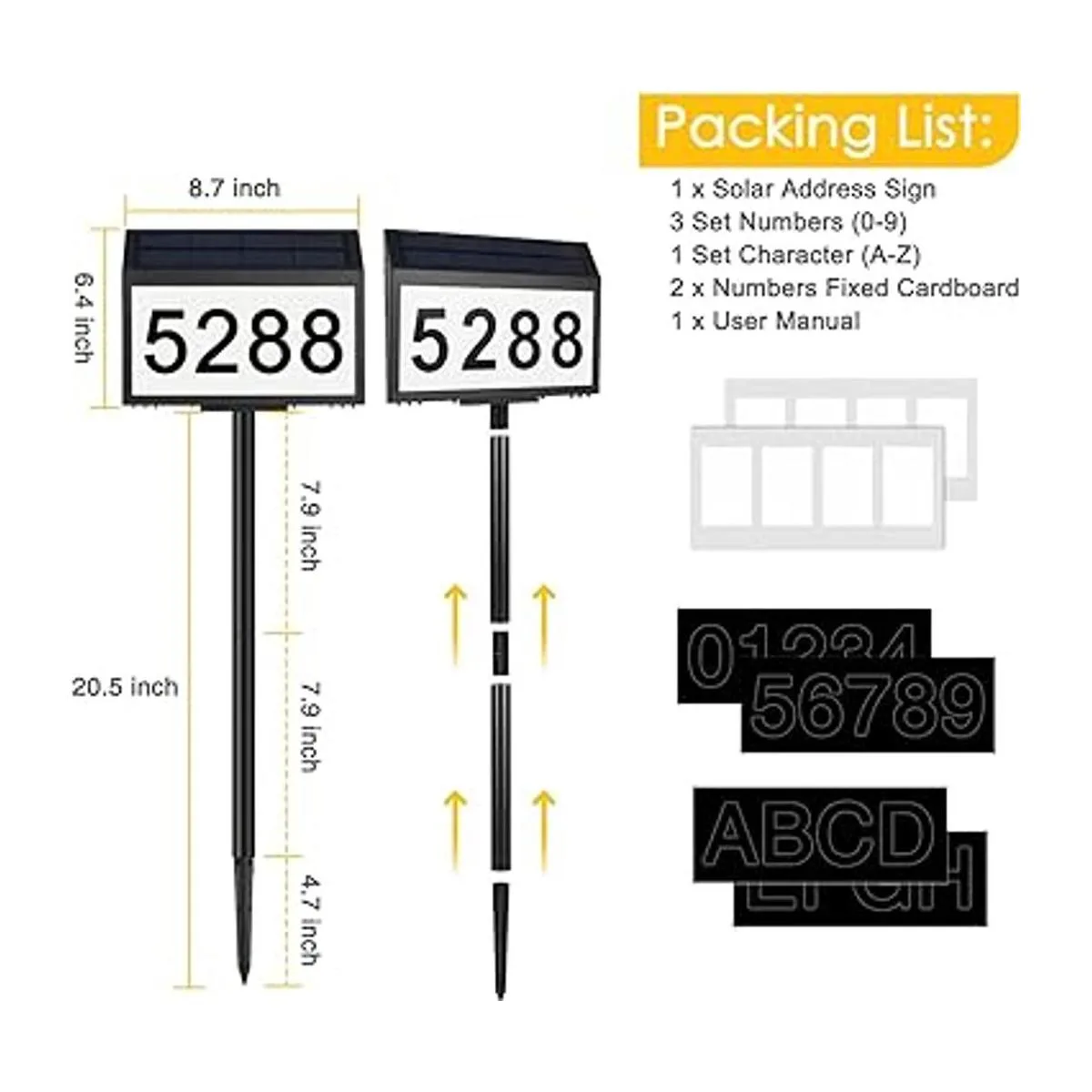 Fácil de aplicar: incluye 3 juegos de números, 1 juego de letras, lee el manual y luego pasa 15 minutos para instalar este número de casa solar, sin tiempo adicional para esperar a la personalización