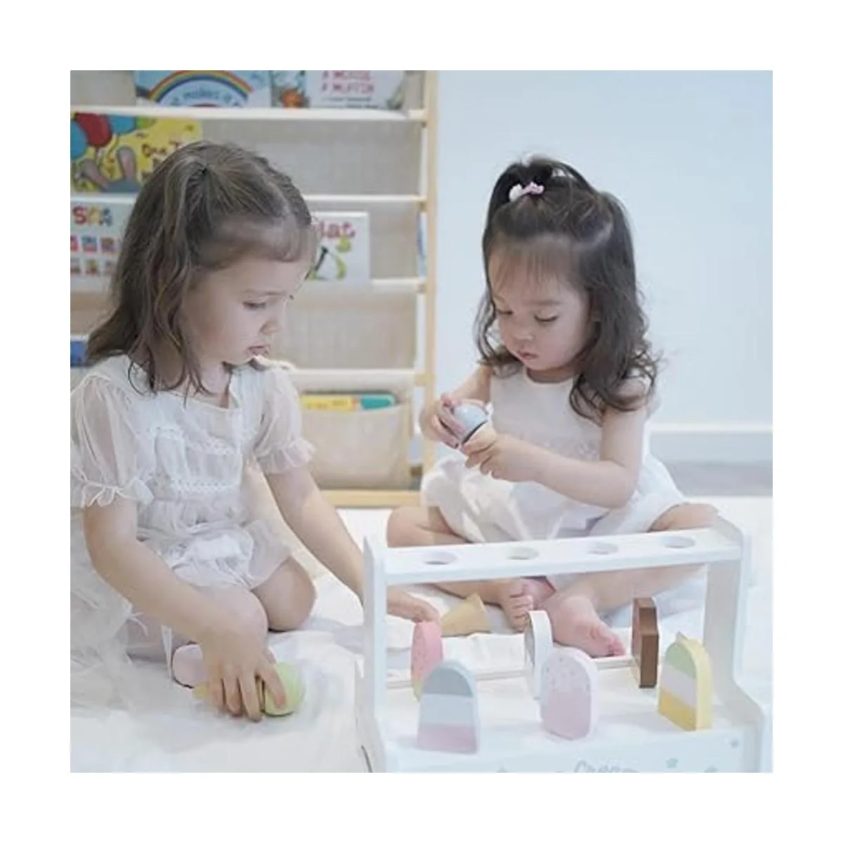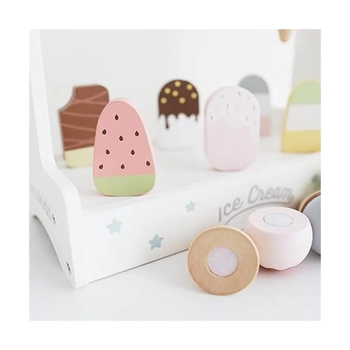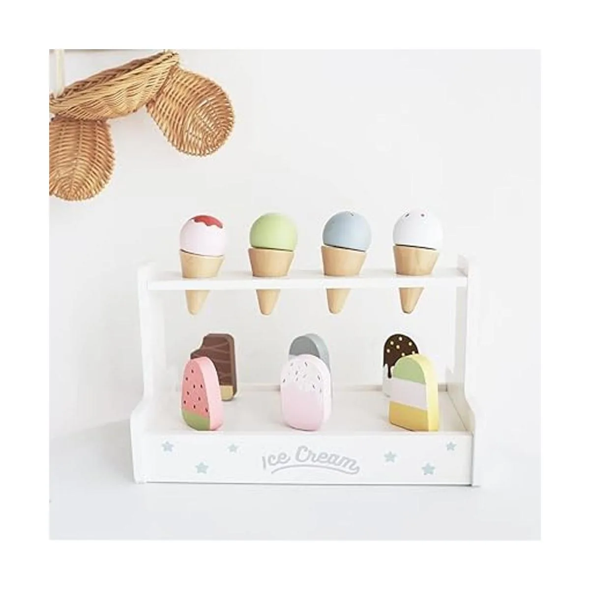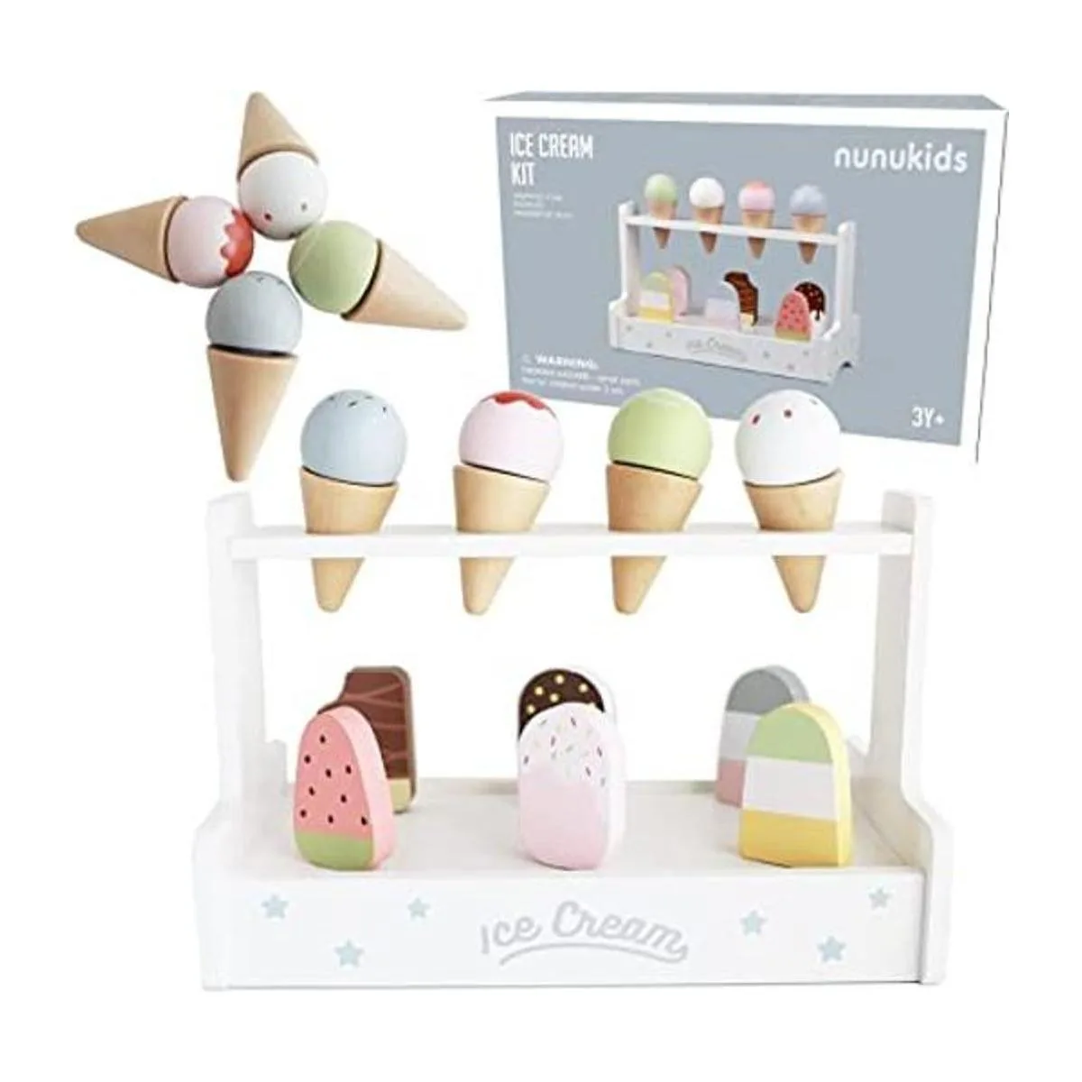 nunukids Juego de helados de madera, juguete de helado de madera para niños, 10 juguetes de helados para niños pequeños