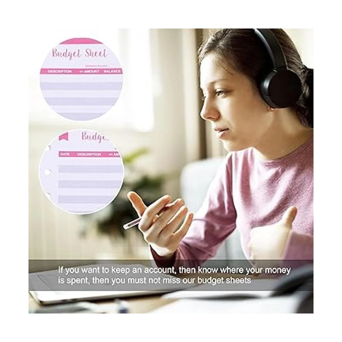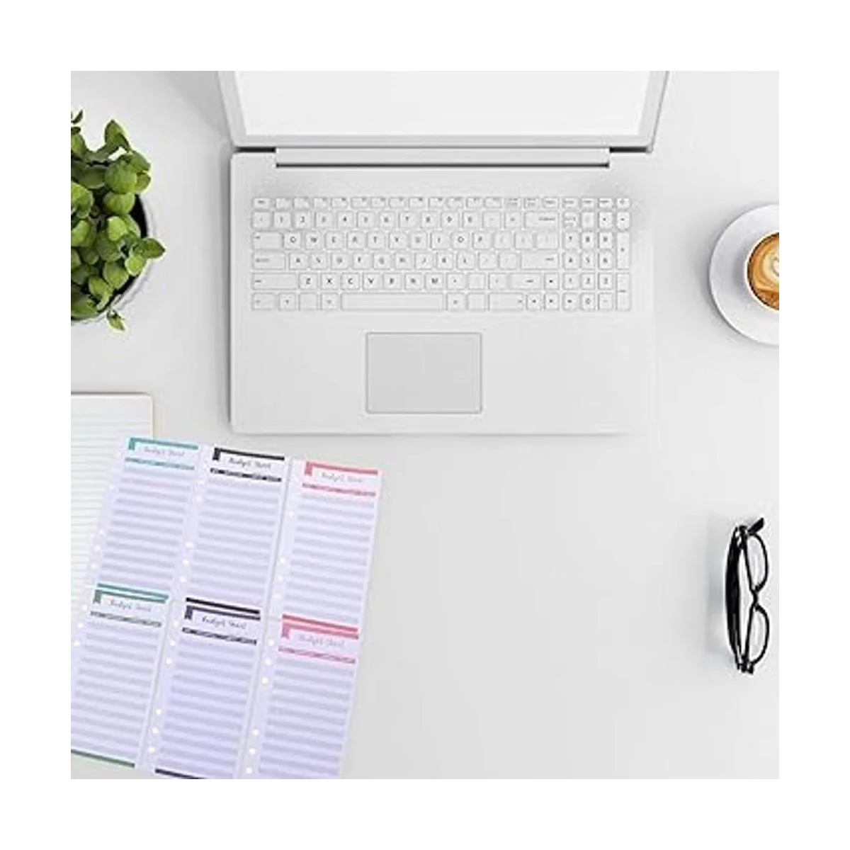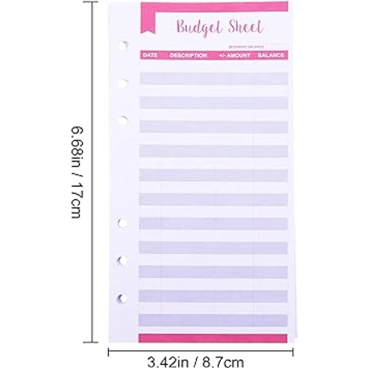 NUOBESTY 20 hojas de presupuesto A6 para carpetas de seguimiento de gastos y hojas de dinero con agujero para sobres de efectivo, libro mayor, organizador de facturas
