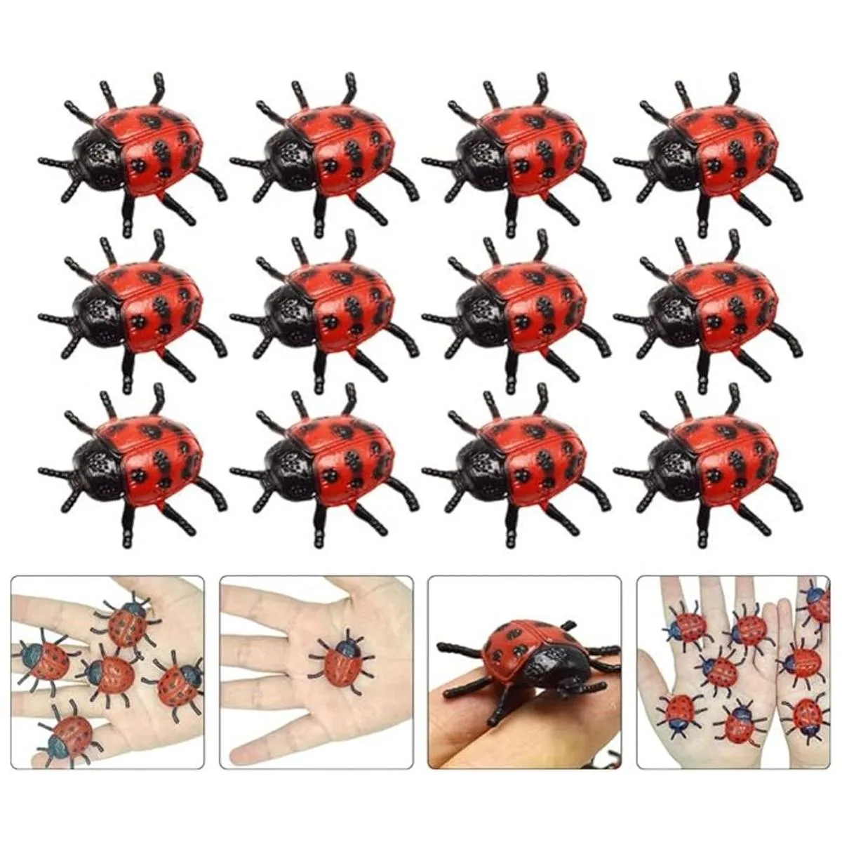 Apariencia: estas figuras de mariquita están diseñadas con un diseño realista, aspecto real y realista, color brillante y mano de obra exquisita, pueden atraer la atención de los niños