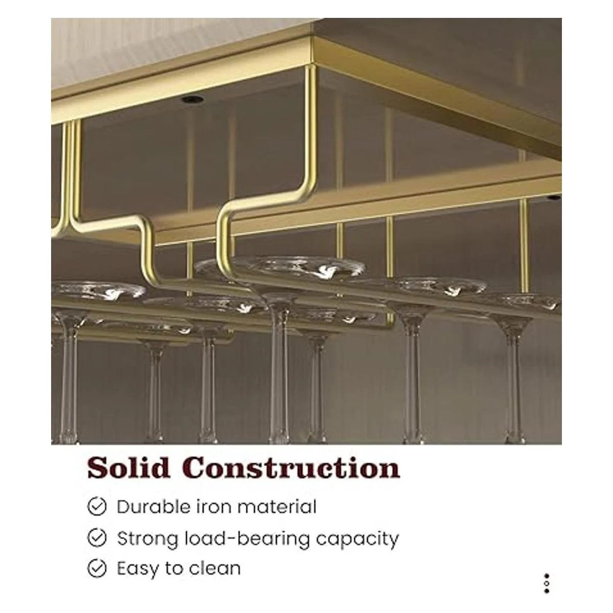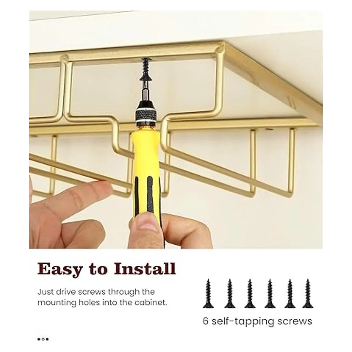 Nuovoware Estante para copas de vino, 4 filas para copas de vino, organizador de metal para debajo del gabinete, estante para copas de bar, gabinete de cocina, Nano dorado