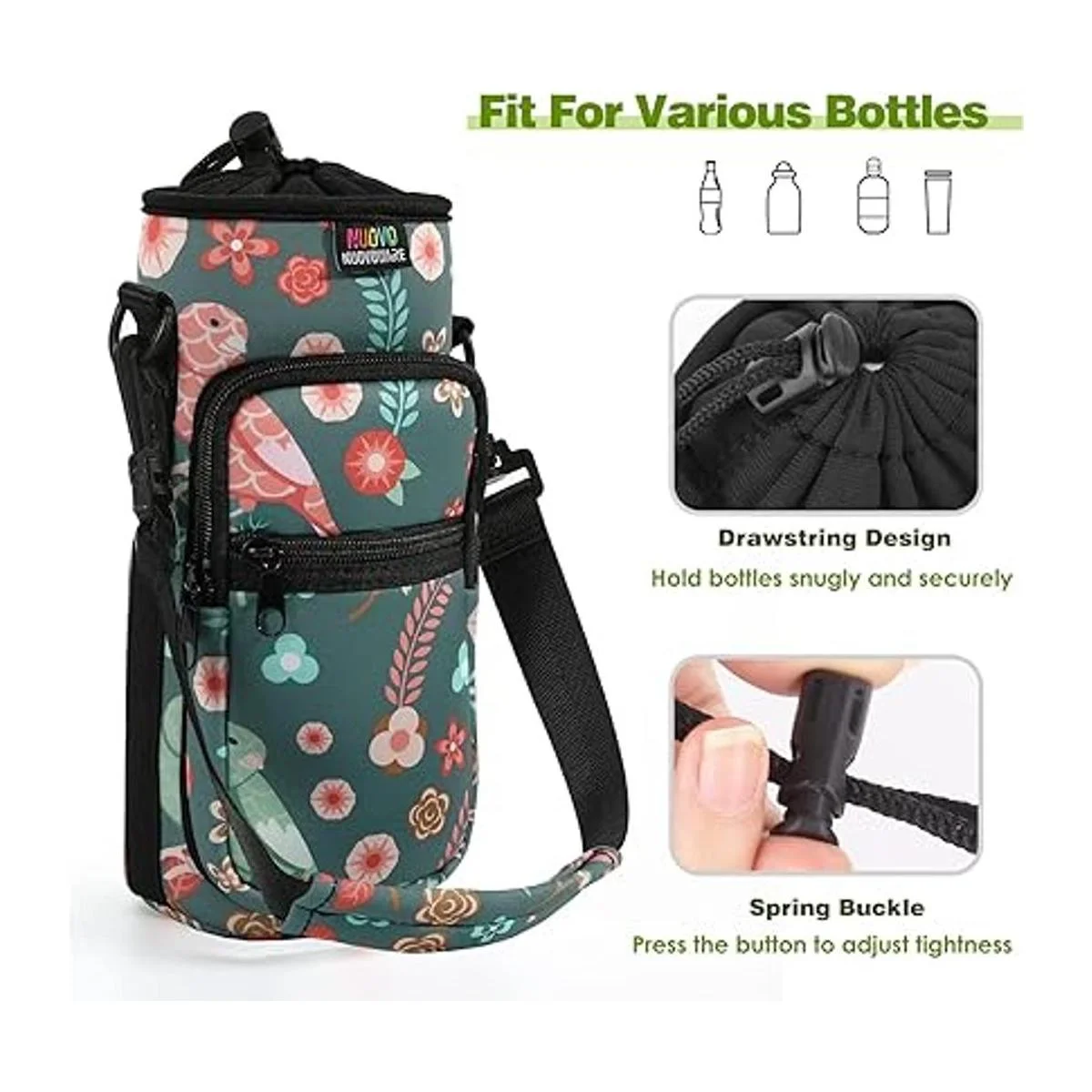Nuovoware Water Bottle Carrier Bag, Bottle Pouch Holder, Adjustable Shoulder Hand Strap 2 Pocket Sling Neoprene Sleeve Sports Water Bottle Accessories for Hiking Travelling Camping