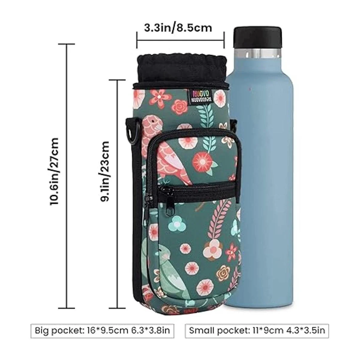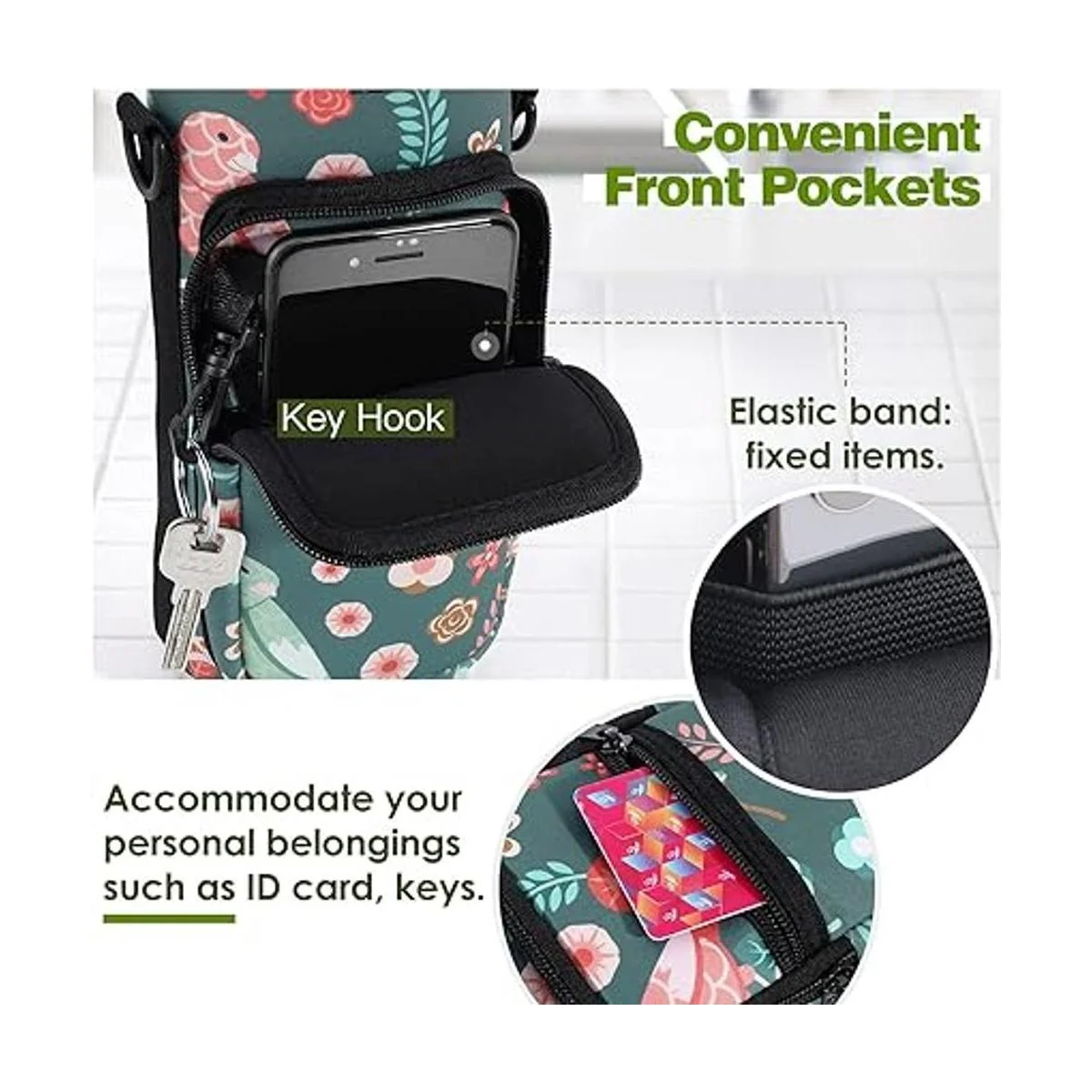 2 bolsillos: El bolsillo pequeño con cierre es para dinero en efectivo y tarjetas, el bolsillo grande con cierre es para teléfonos inteligentes, llaves y otros artículos esenciales. Cuando salgas, solo tienes que llevar esta bolsa para botella de agua, no es necesario llevar una bolsa para guardar objetos pequeños.