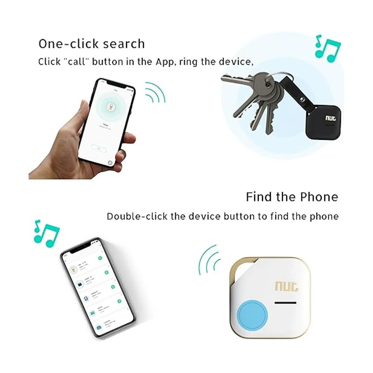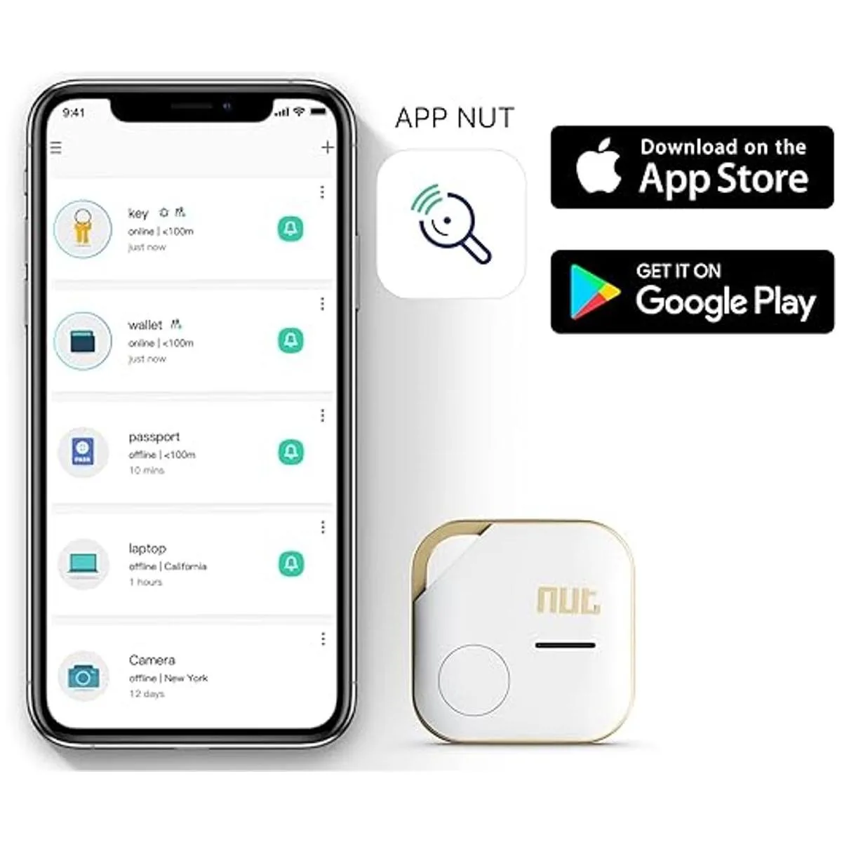 Key Finder with App The key finder is connected to the phone via Bluetooth and Nut App. Size: 1.67inX1.67inX0.31in. It supports for iOS and Android phone. With 1 NutPro finder to attach keys, wallet, remote, glasses, phones, dog collars or other things that are easy lost. The key finder locator will help you not waste time searching for stuff.